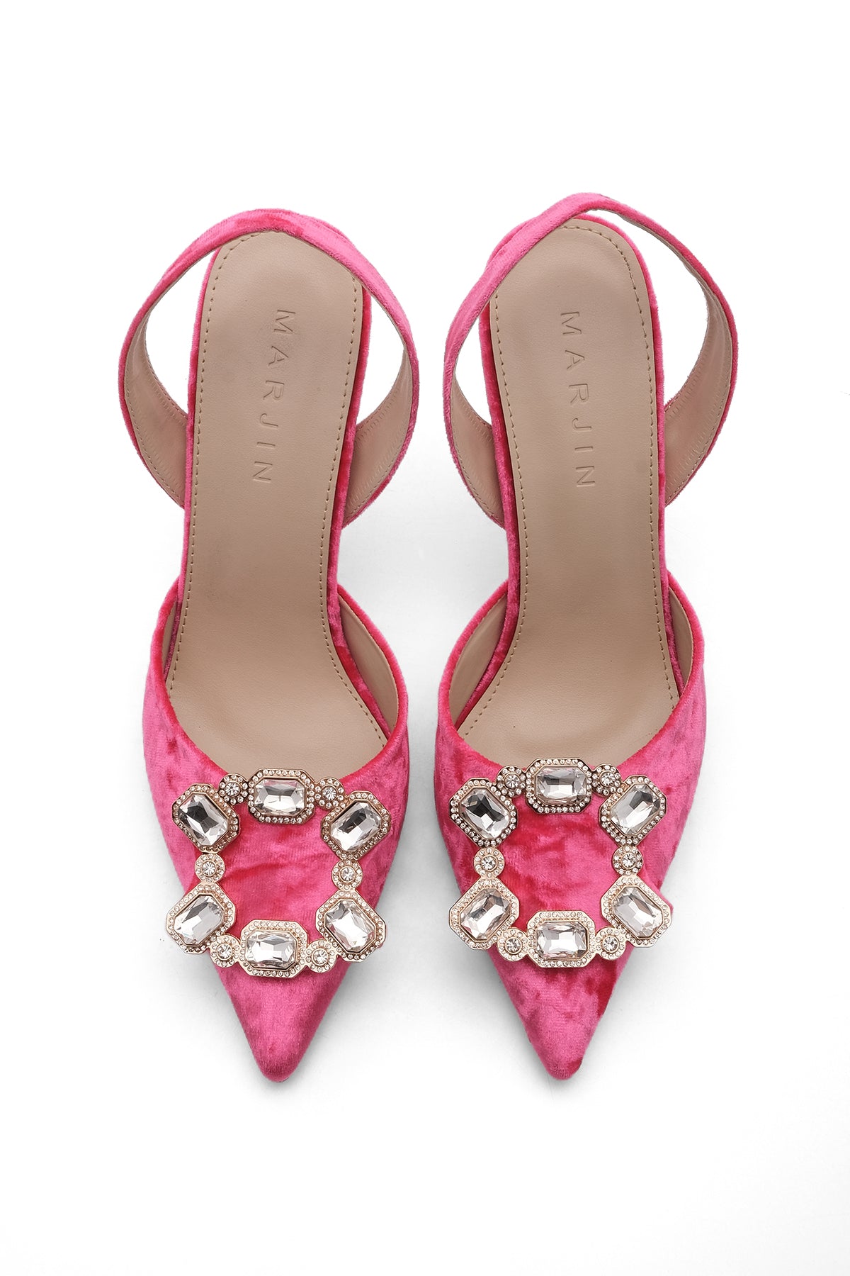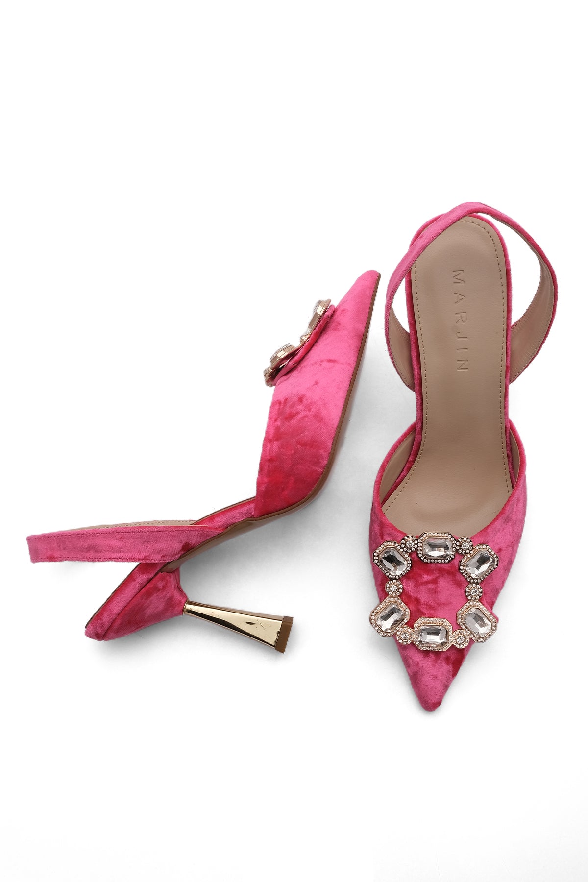 Kadın Taşlı Abiye Topuklu Ayakkabı Basivra - Fuşya Kadife
