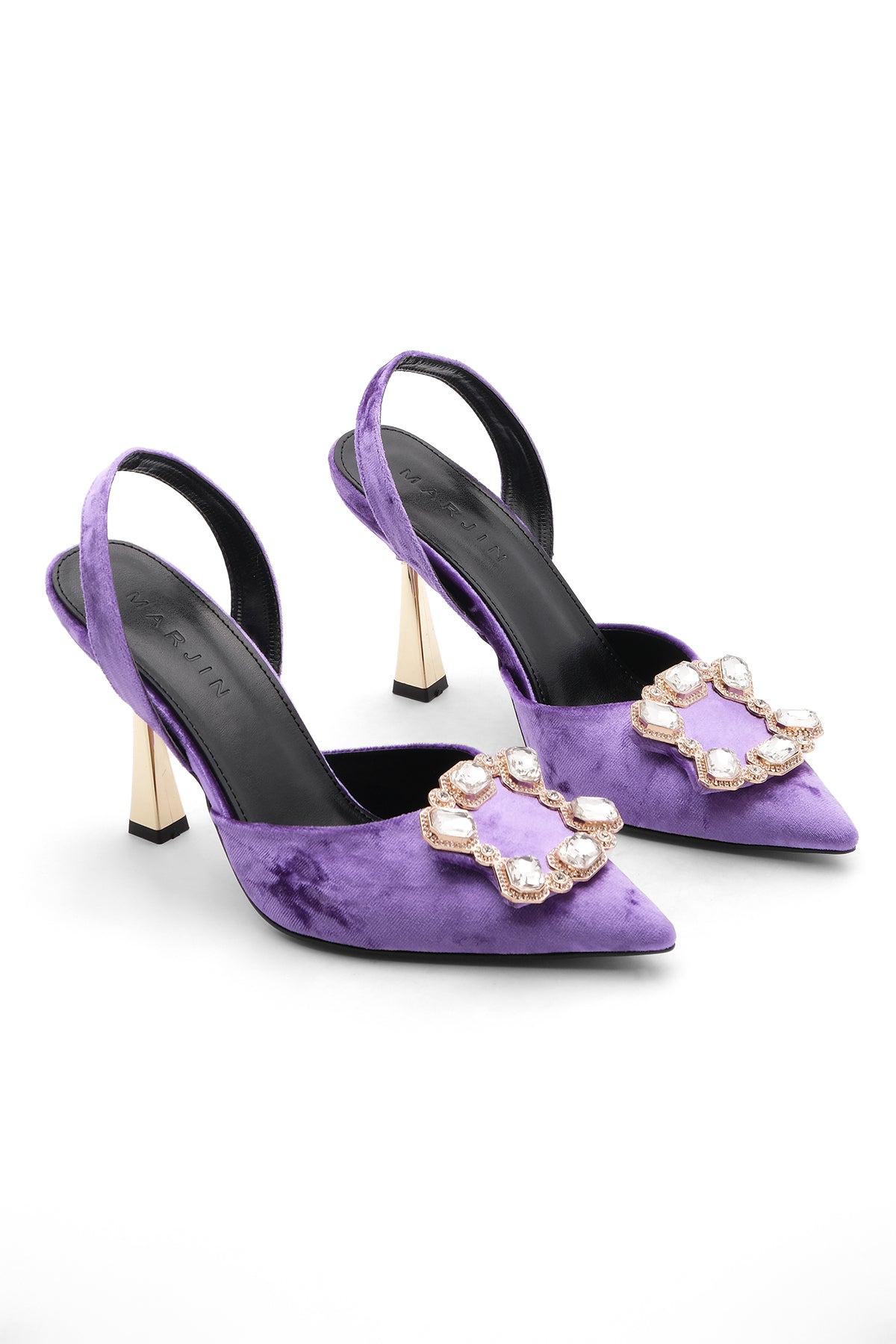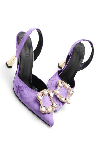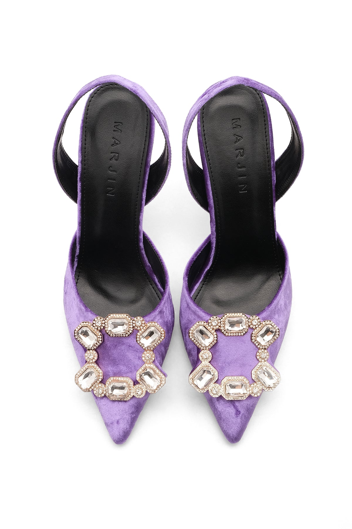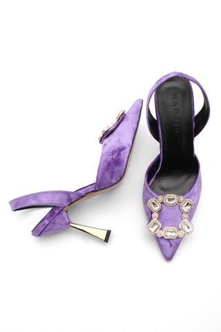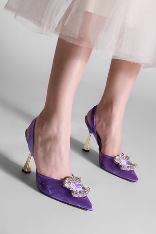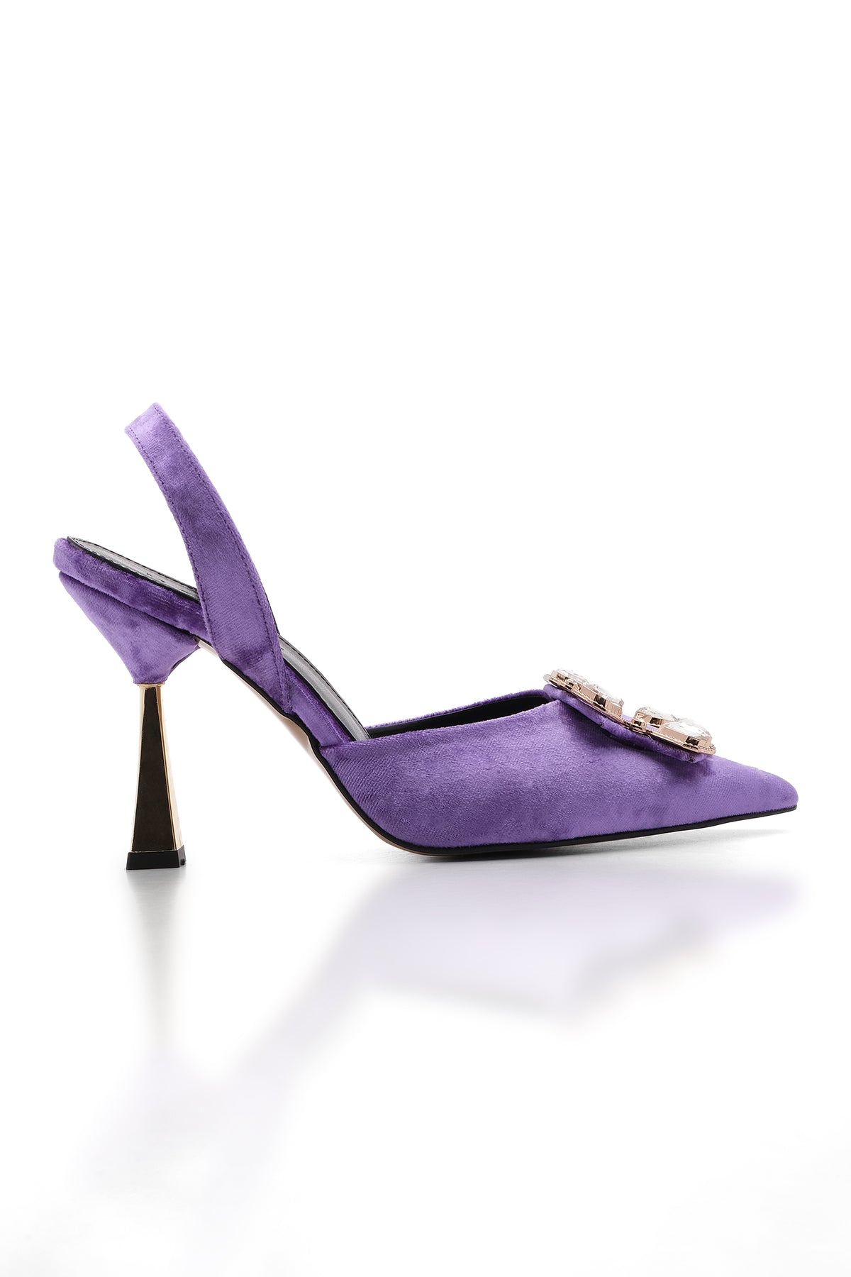 Kadın Taşlı Abiye Topuklu Ayakkabı Basivra - Mor Kadife