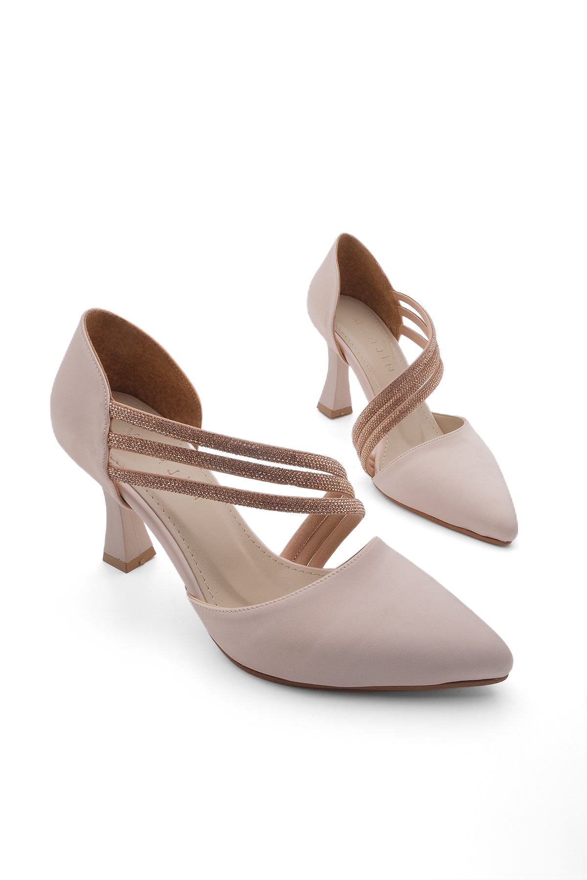 Kadın Taşlı Abiye Topuklu Ayakkabı Esile - Bej
