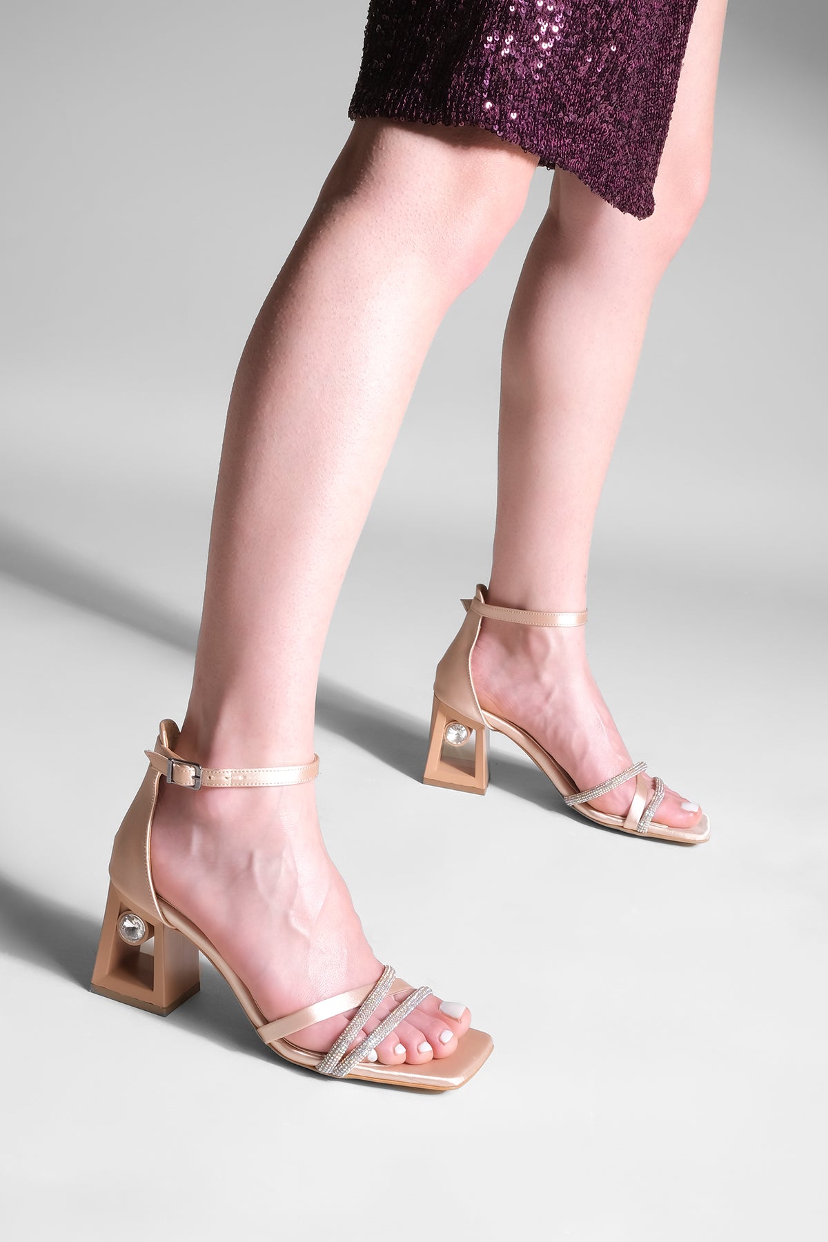 Kadın Taşlı Abiye Topuklu Ayakkabı Hones - Bej