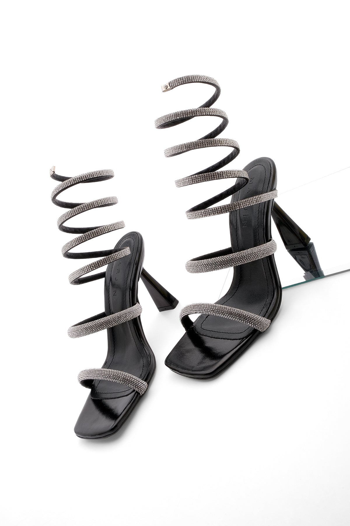Kadın Taşlı Abiye Topuklu Ayakkabı Huntera - Siyah