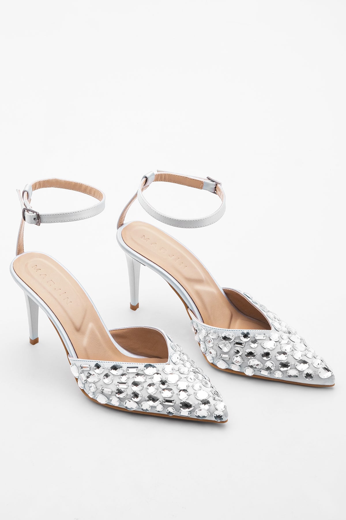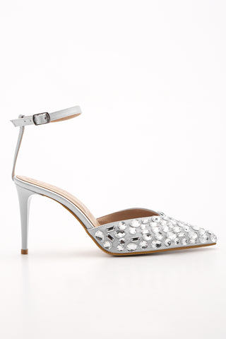 Kadın Taşlı Abiye Topuklu Ayakkabı Kesla - Gümüş