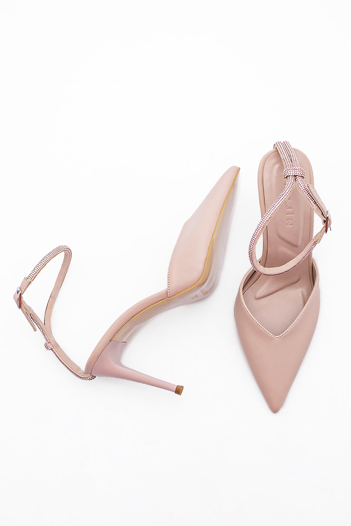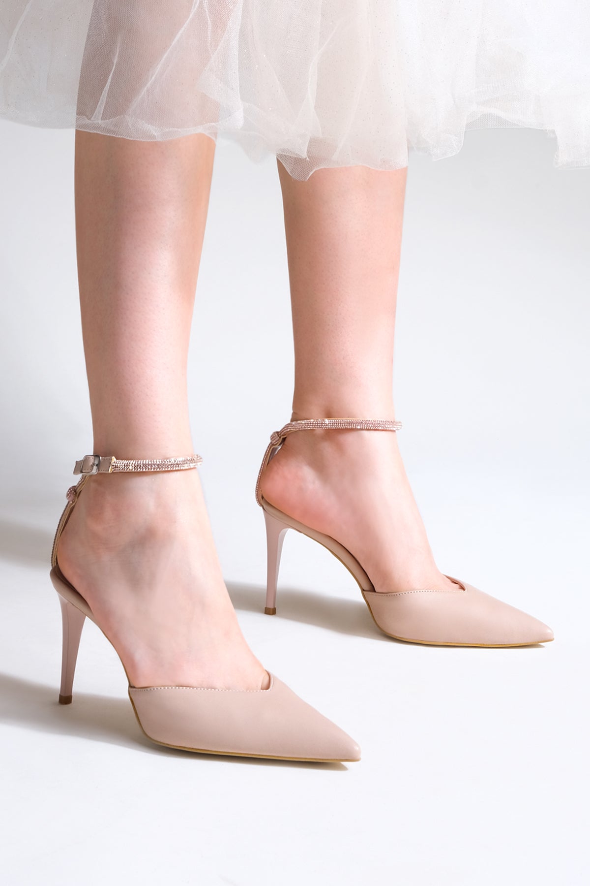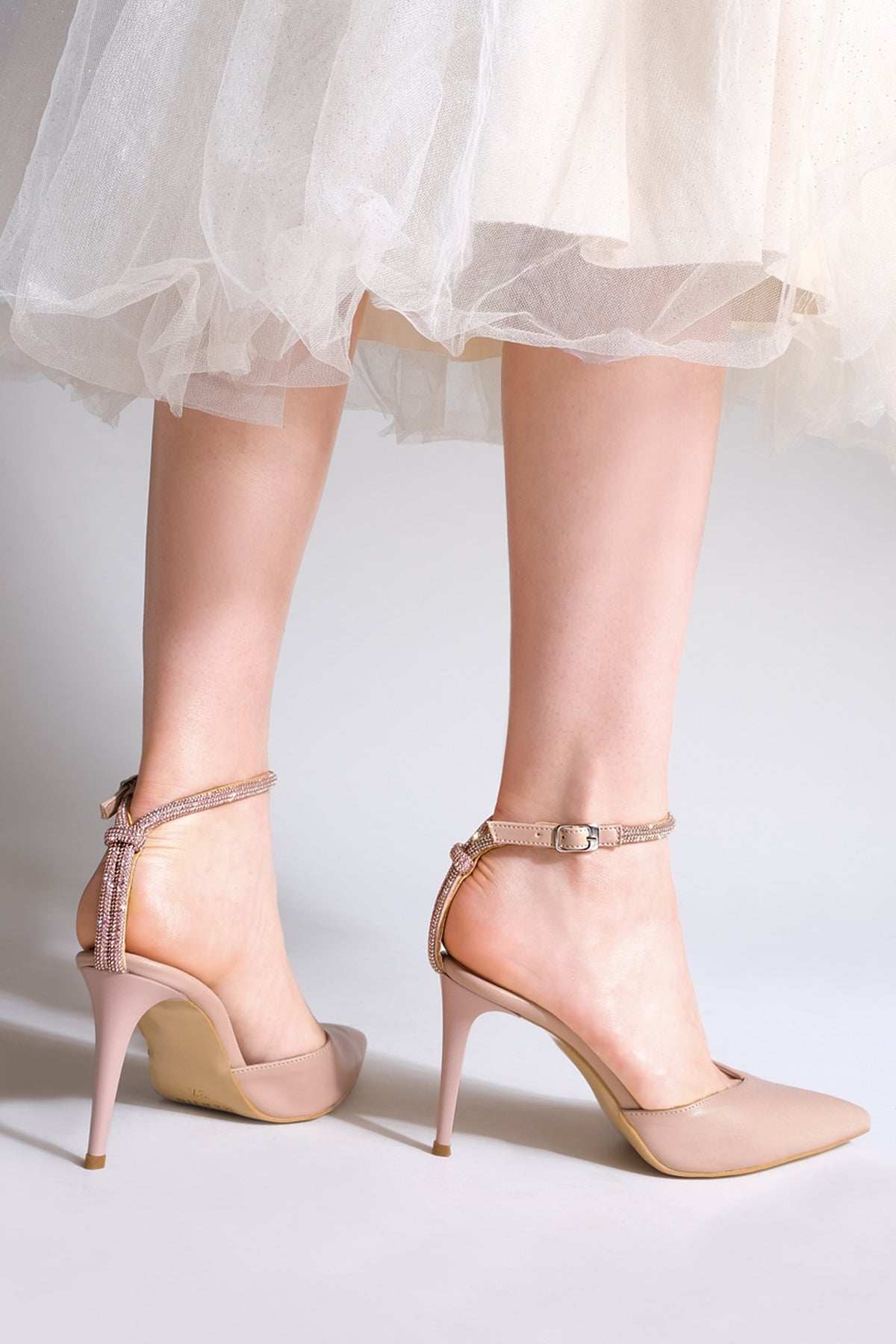 Kadın Taşlı Abiye Topuklu Ayakkabı Magnes - Bej