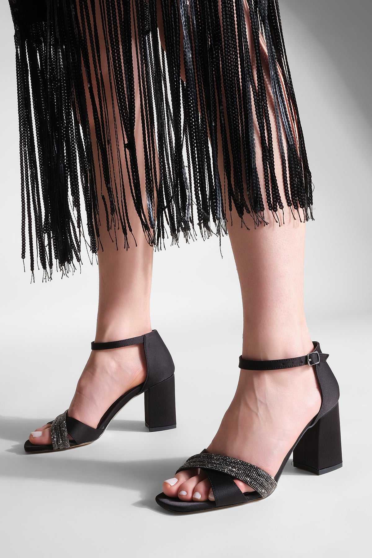Kadın Taşlı Abiye Topuklu Ayakkabı Melpa - Siyah