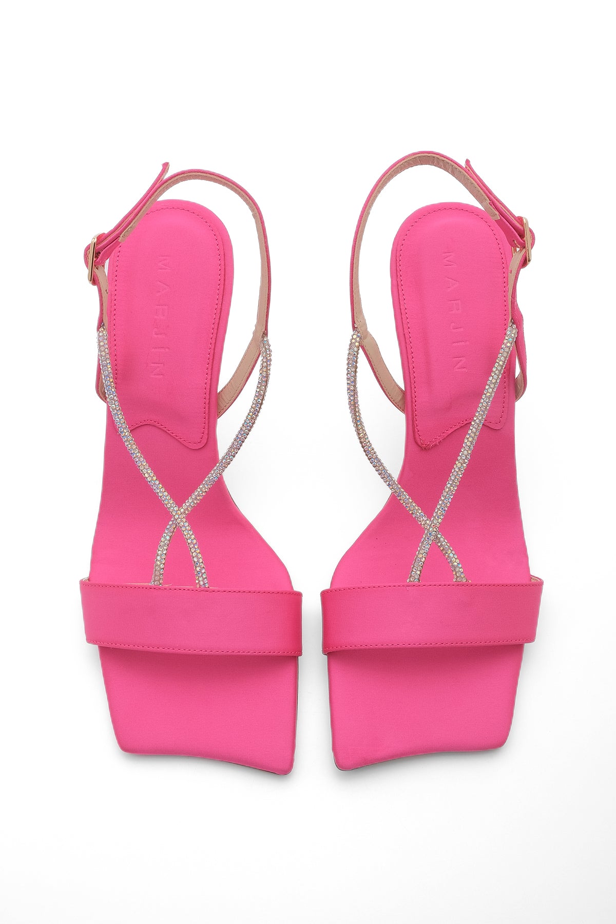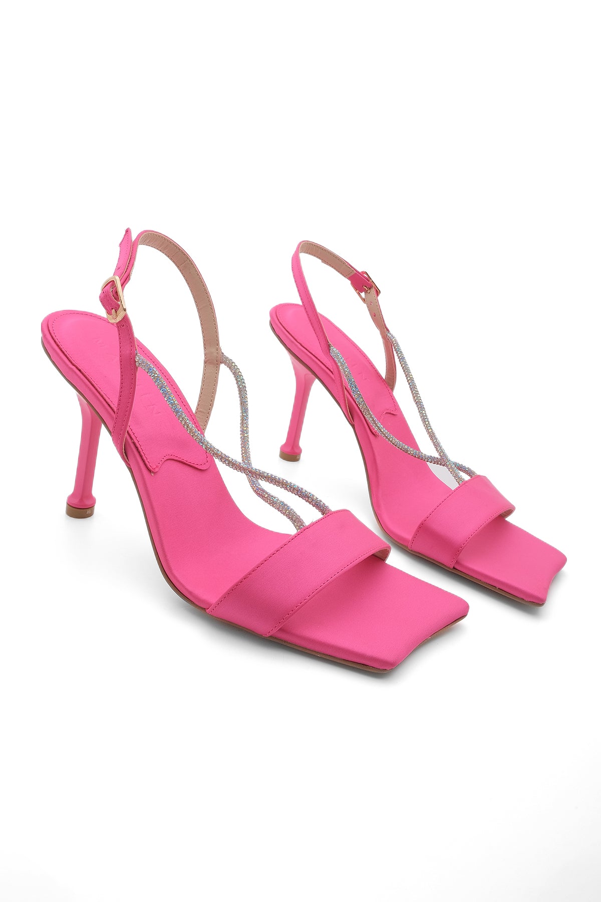 Kadın Taşlı Abiye Topuklu Ayakkabı Roled - Fuşya Saten