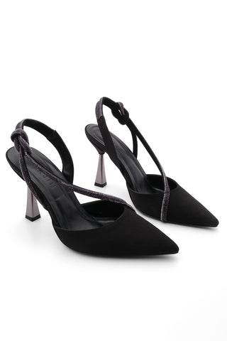 Kadın Taşlı Abiye Topuklu Ayakkabı Yonas - Siyah