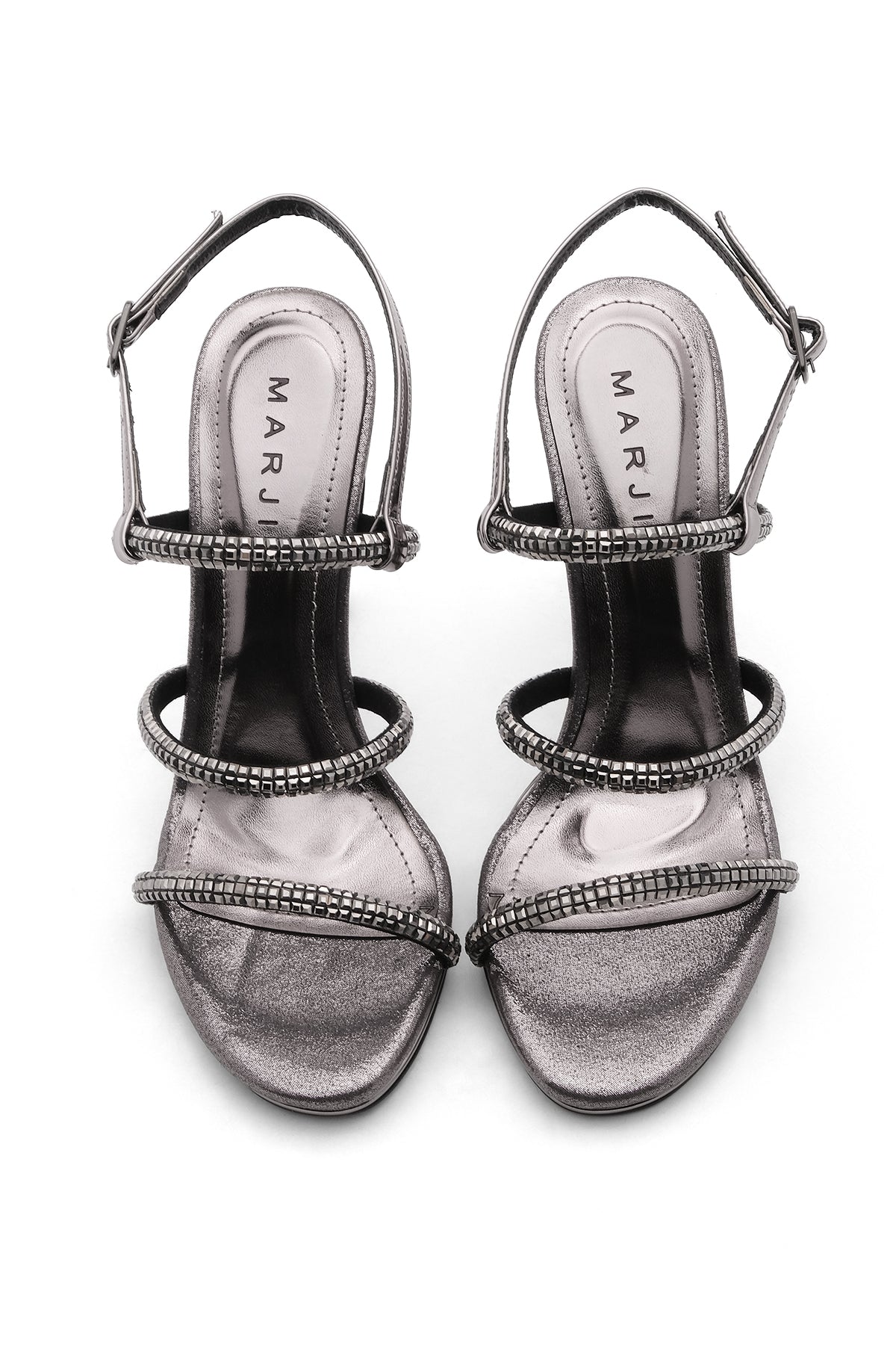 Kadın Taşlı Platform Topuklu Abiye Ayakkabı Dekol - Platin