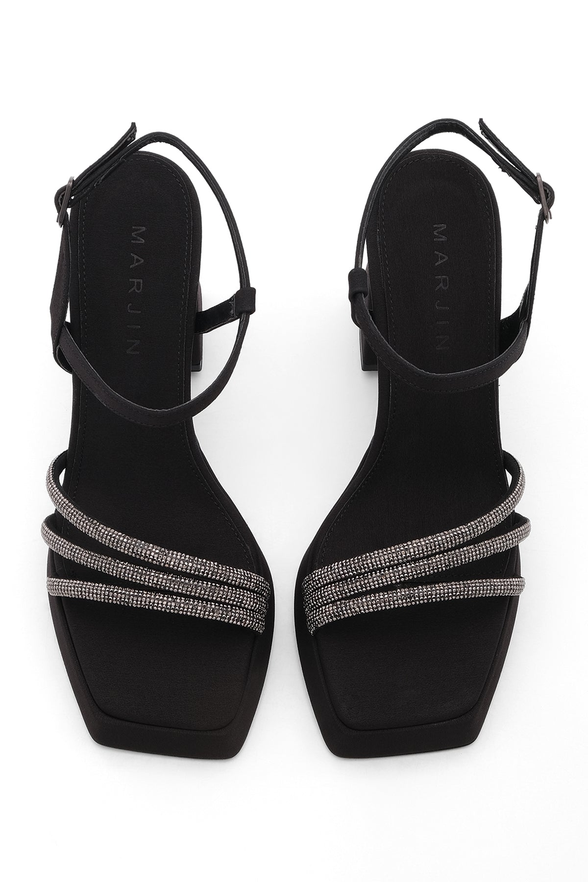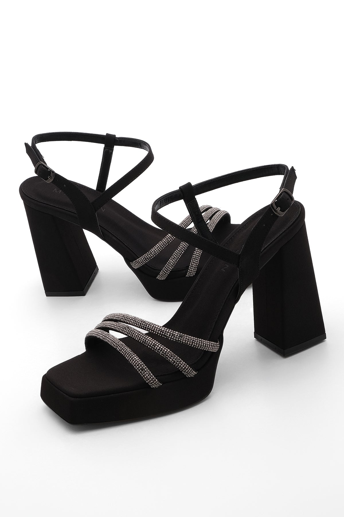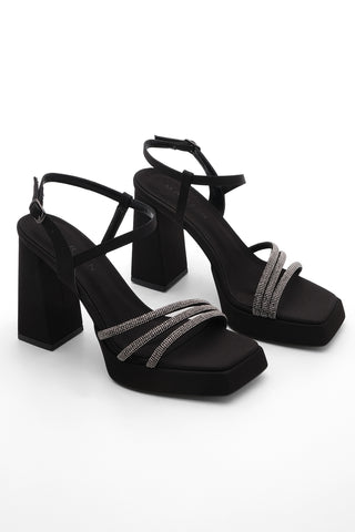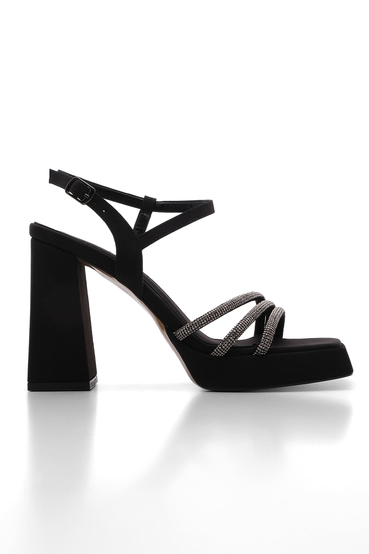 Kadın Taşlı Platform Topuklu Abiye Ayakkabı Pavo - Siyah Saten