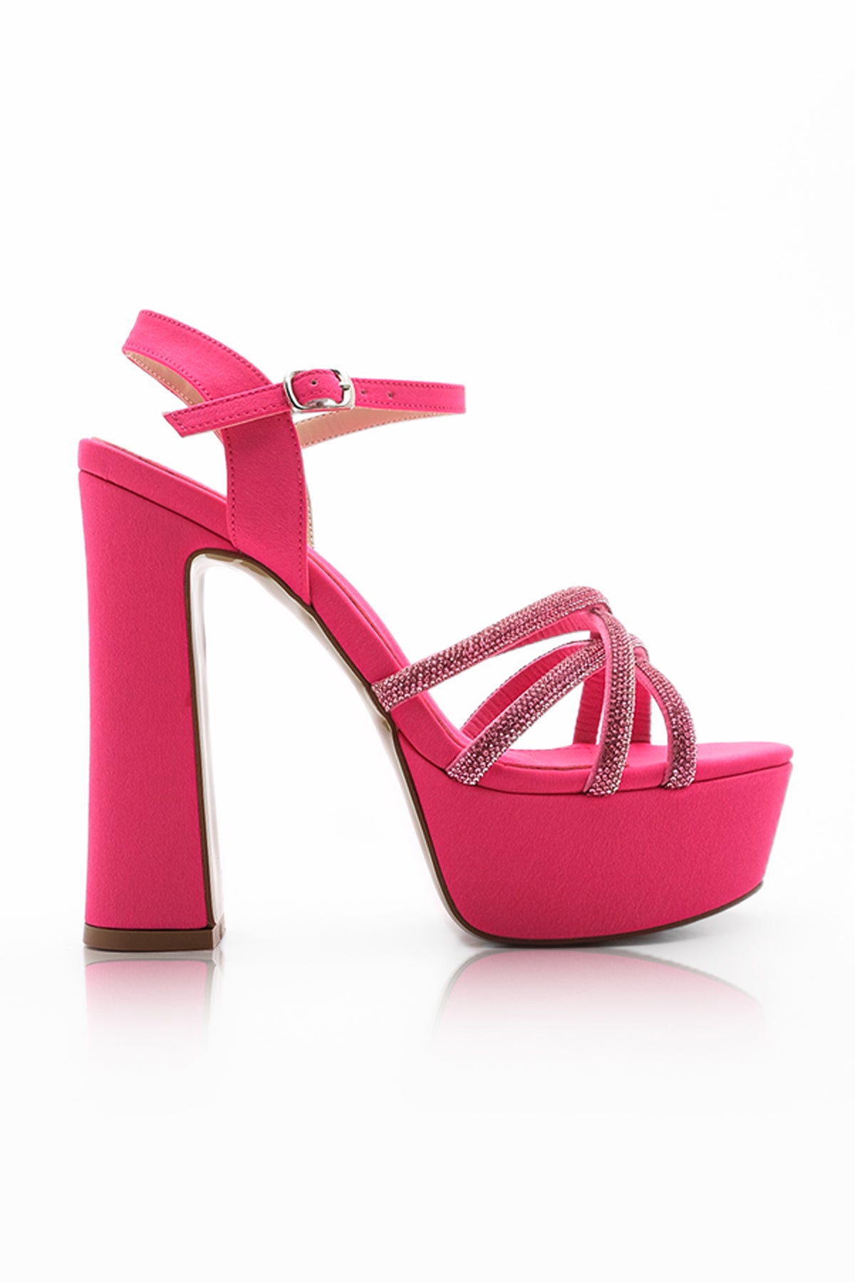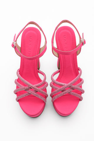 Kadın Taşlı Platform Topuklu Abiye Ayakkabı Yunes - Fuşya