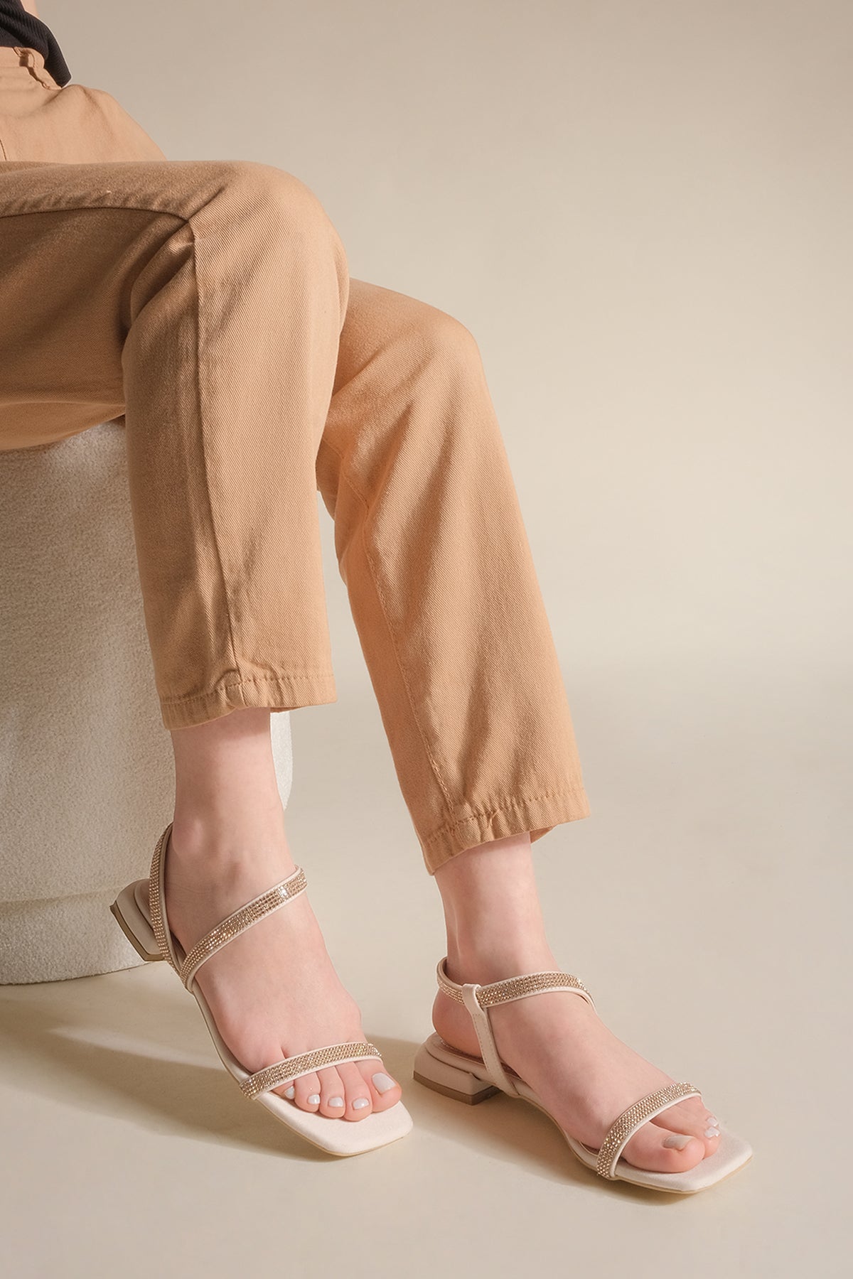 Kadın Taşlı Sandalet Helgin - Bej