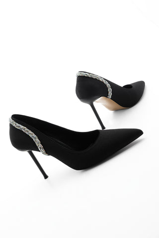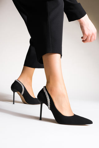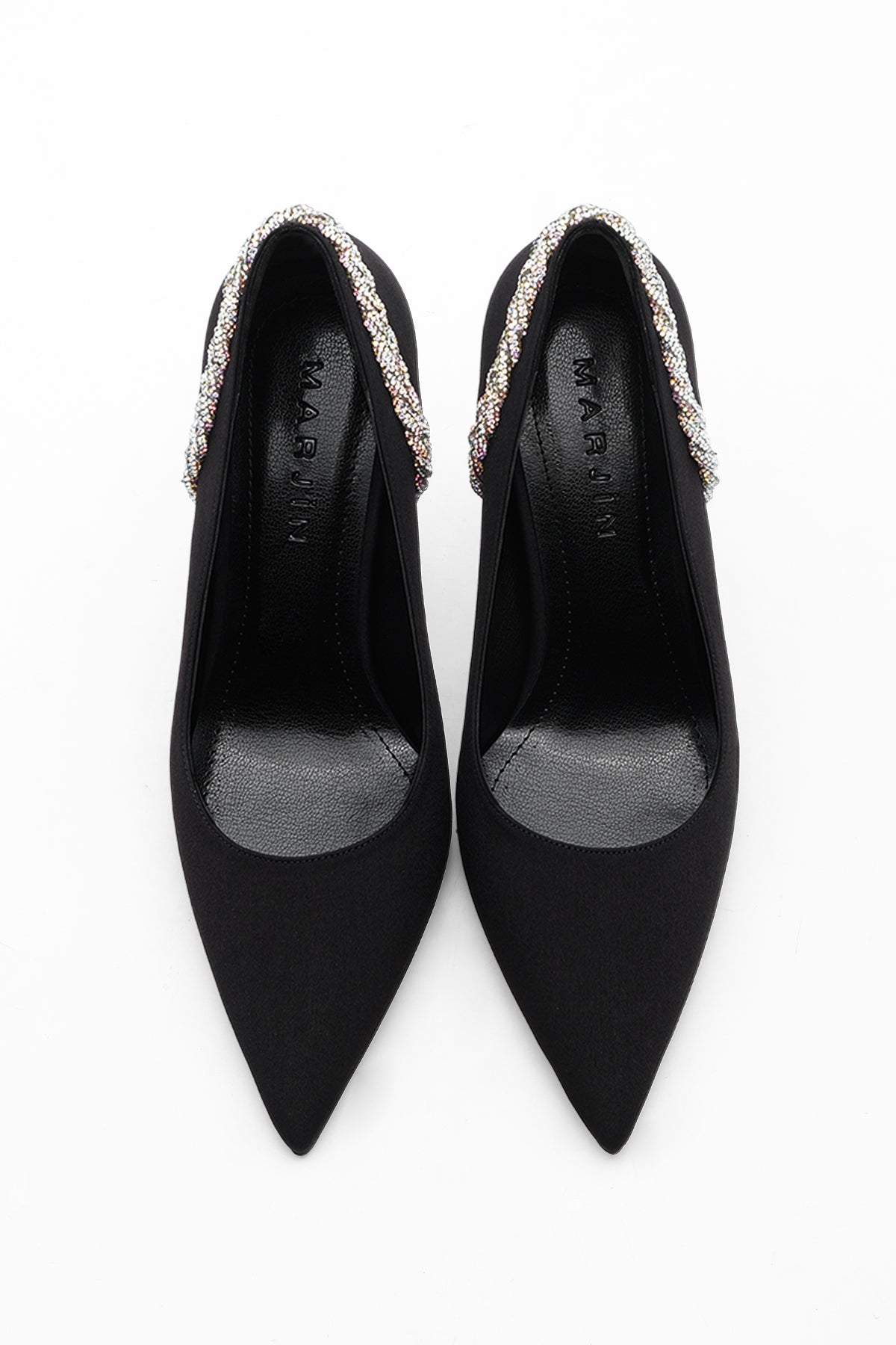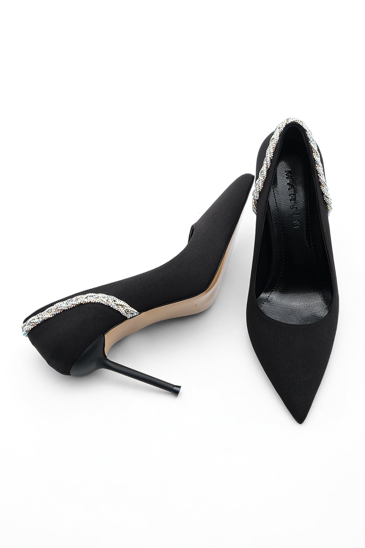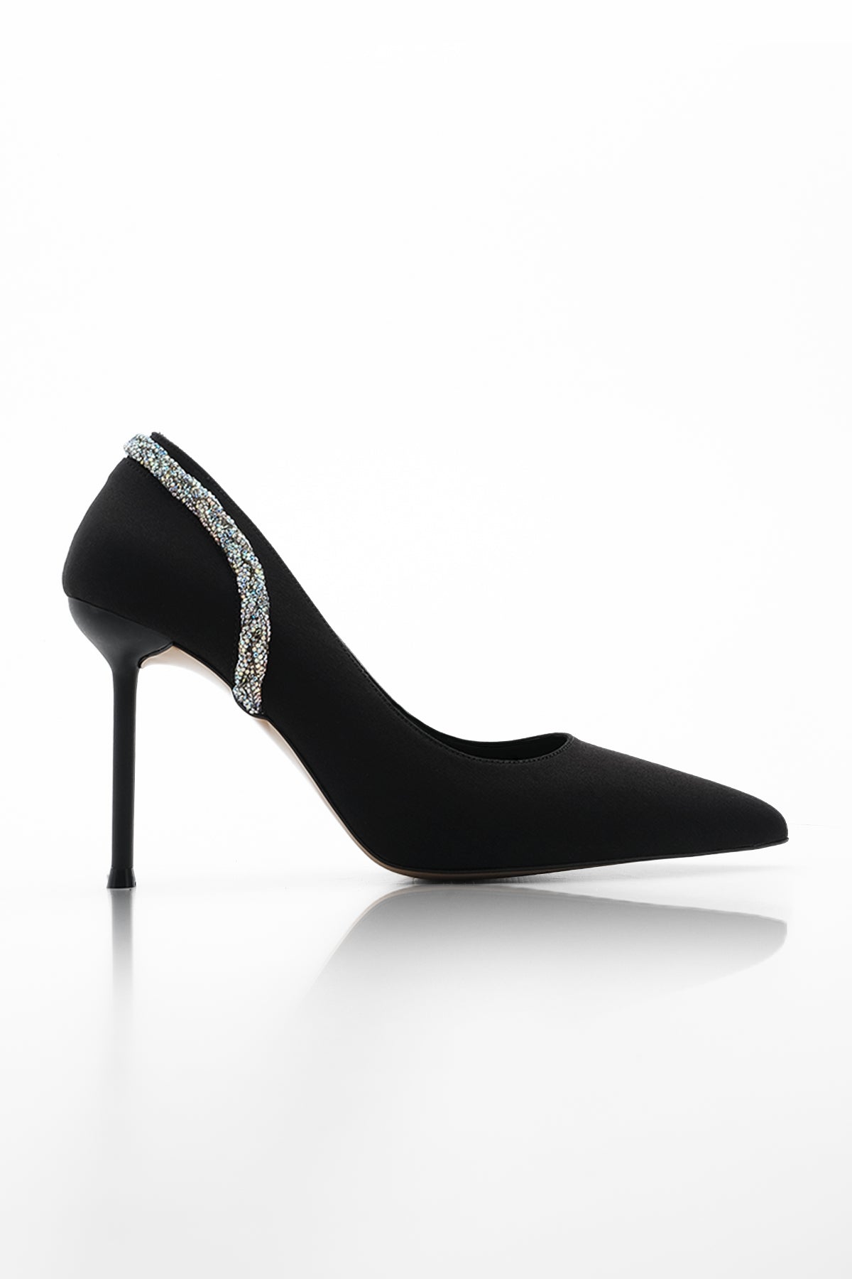 Kadın Taşlı Stiletto Topuklu Ayakkabı Deyos - Siyah