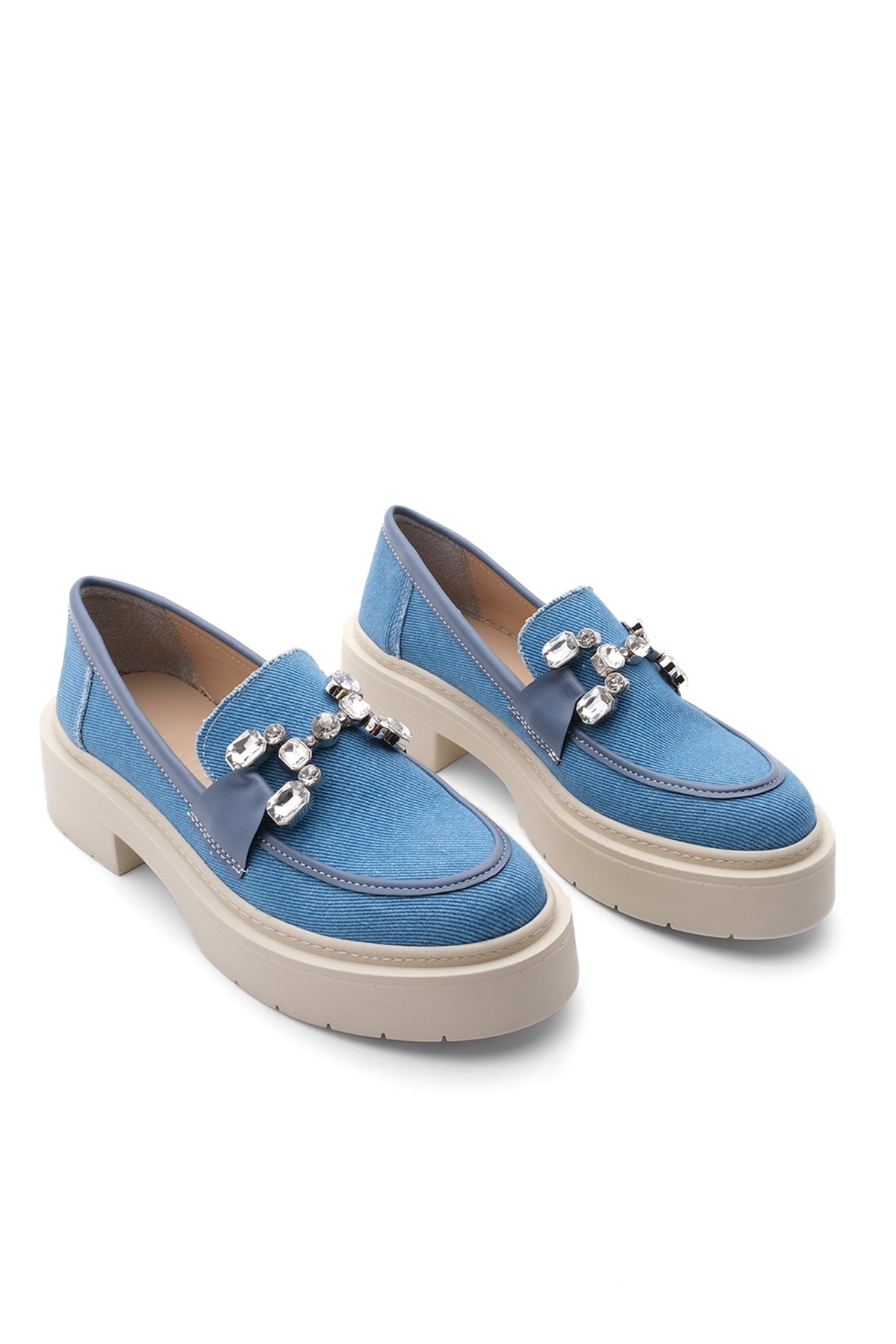 Kadın Taşlı Tokalı Loafer Günlük Ayakkabı Mater - Mavi Kot