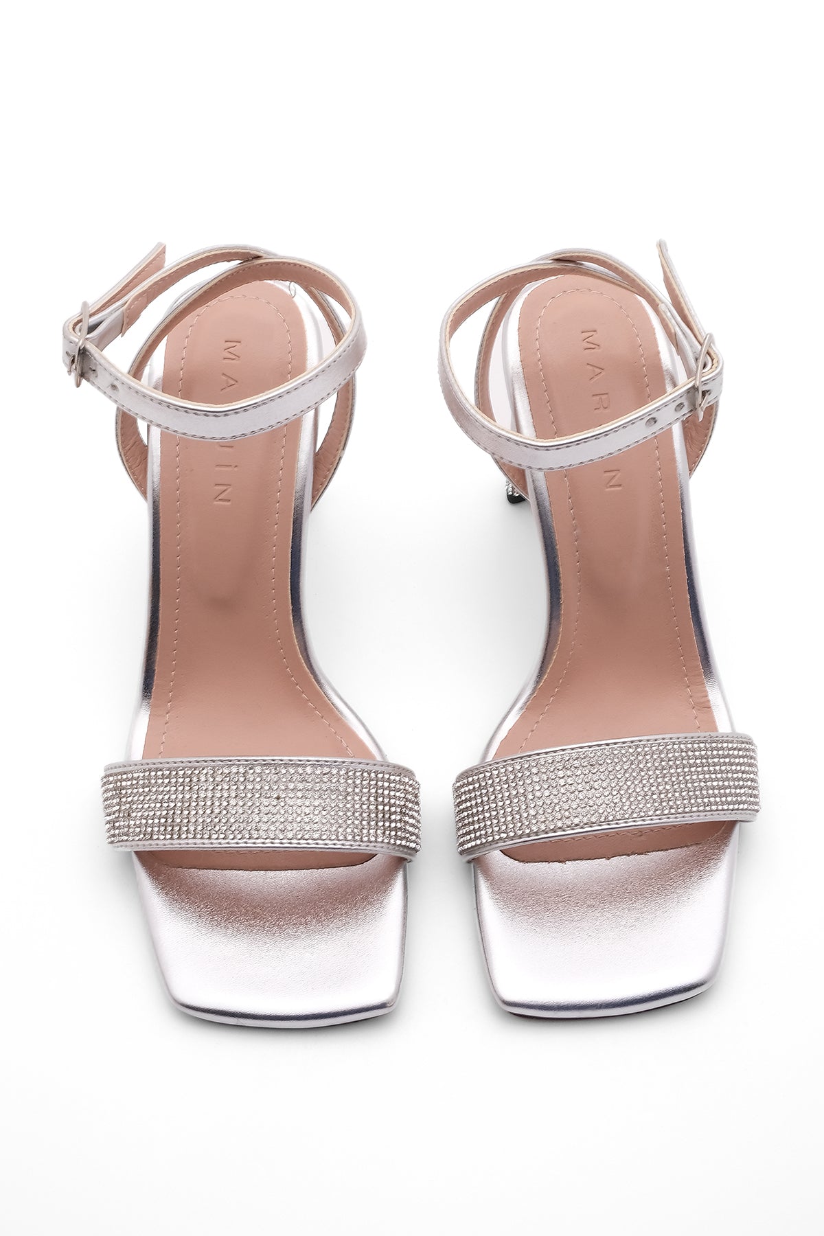 Kadın Taşlı Topuklu Abiye Ayakkabı Tesor - Gümüş