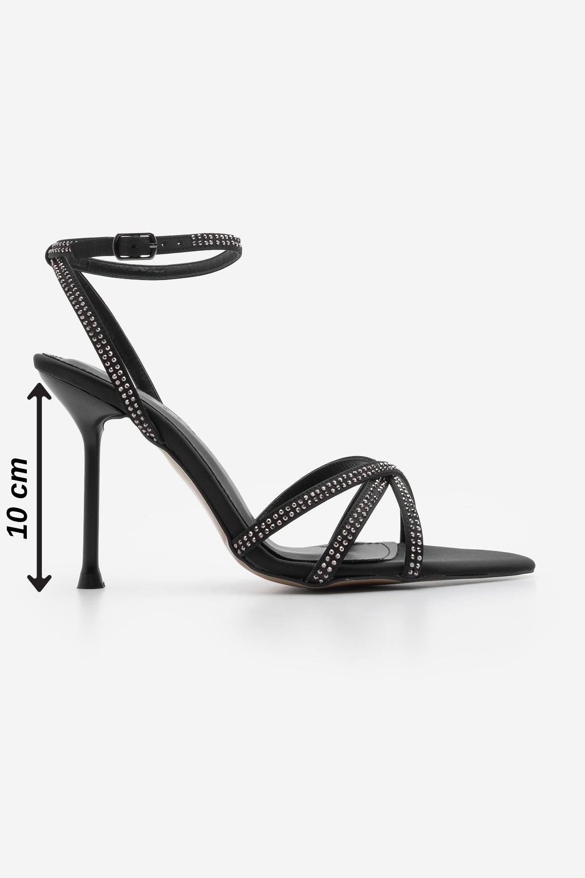 Kadın Taşlı Topuklu Sandalet Celiva - Siyah Saten