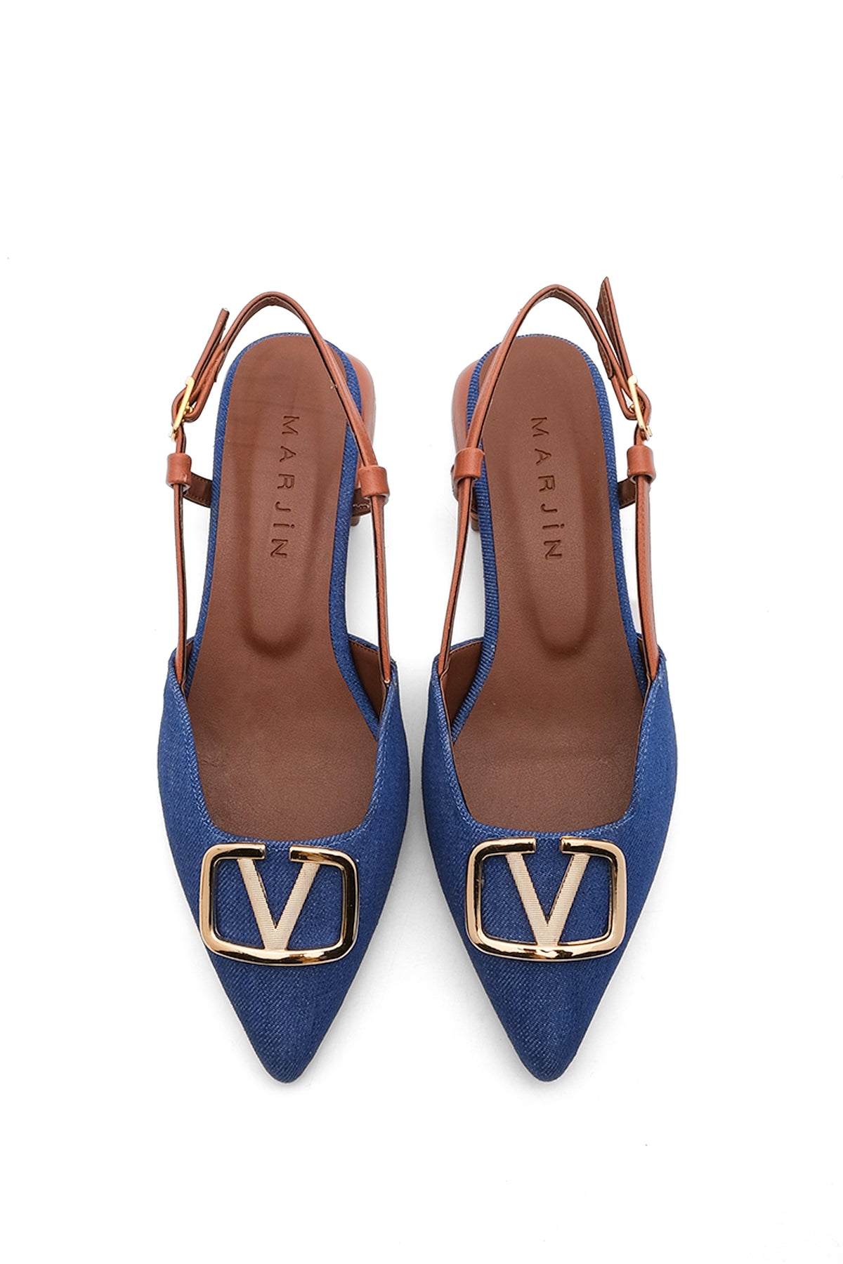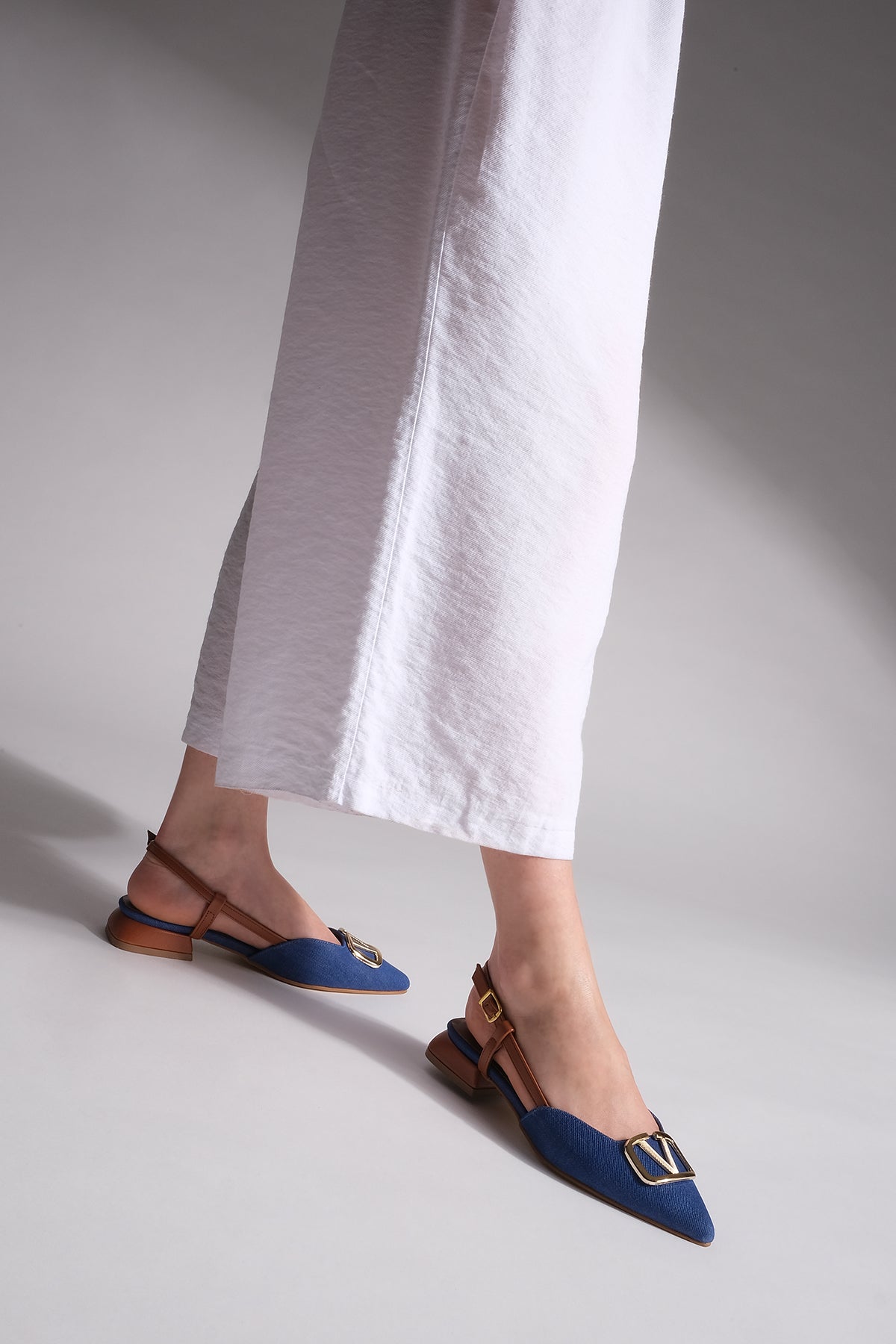 Kadın Tokalı Babet Farsi - Mavi Kot