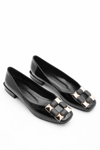 Kadın Tokalı Babet&Günlük Ayakkabı Alvada - Siyah Rugan
