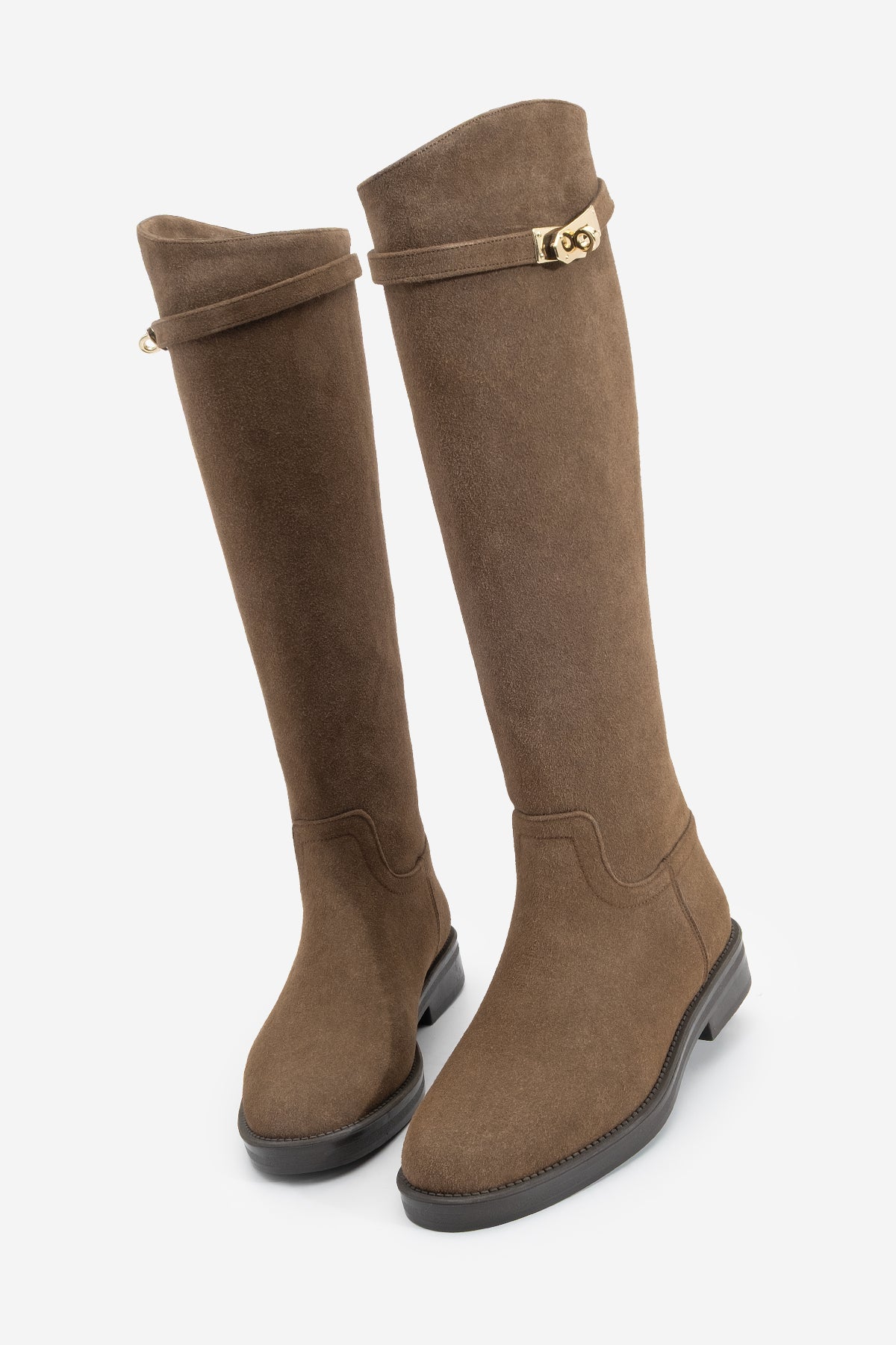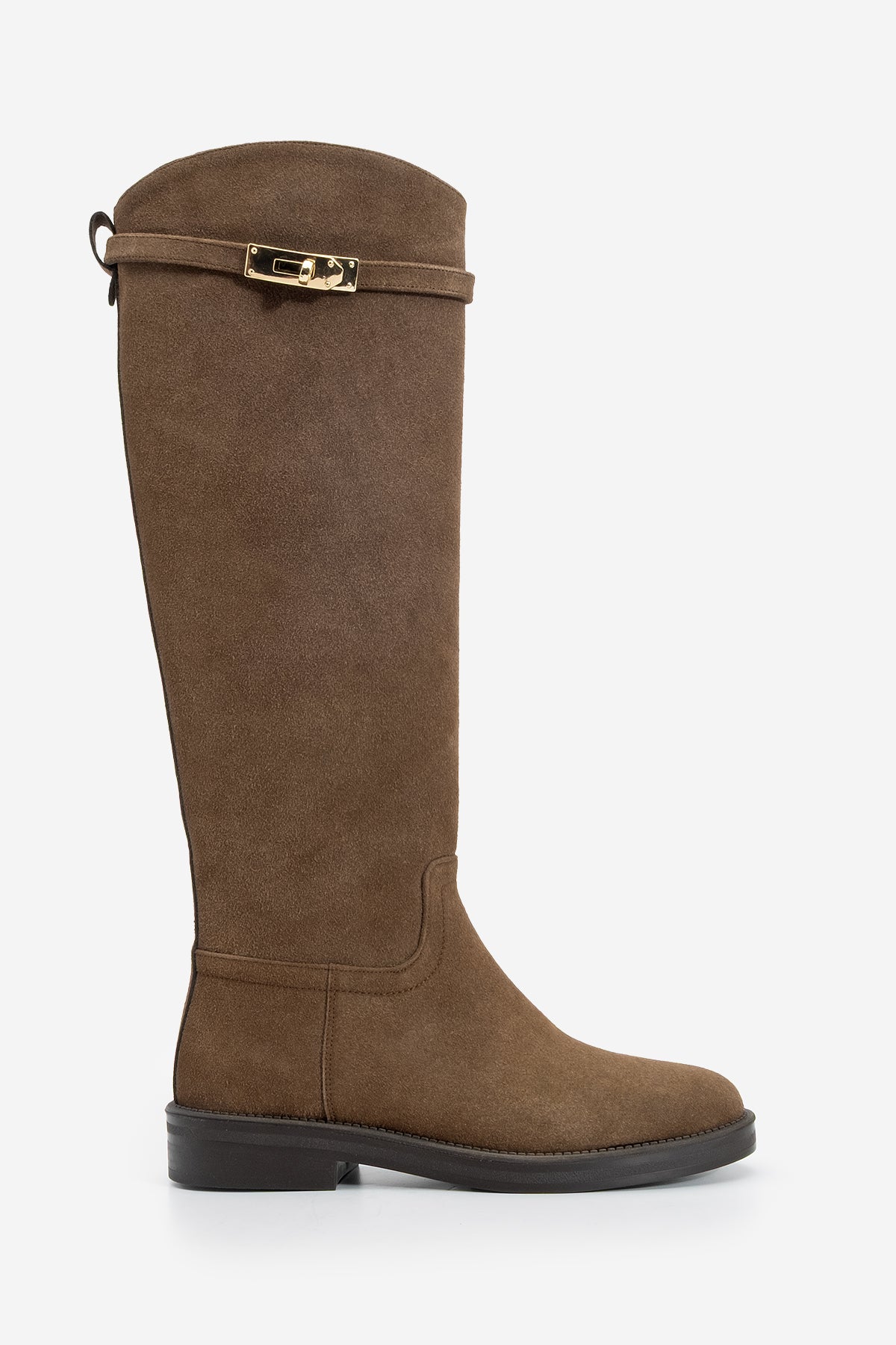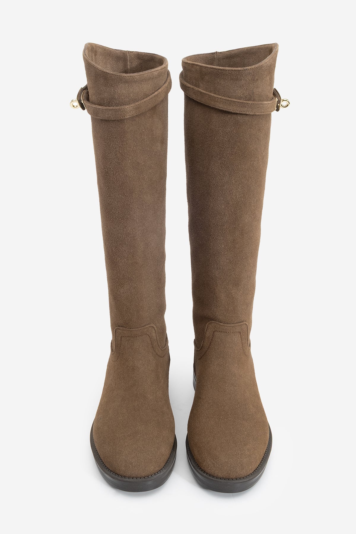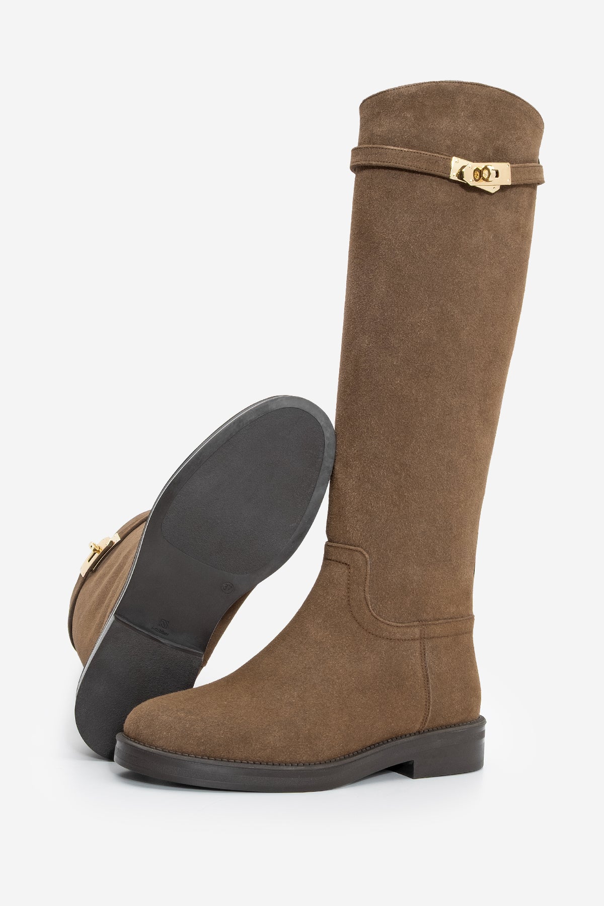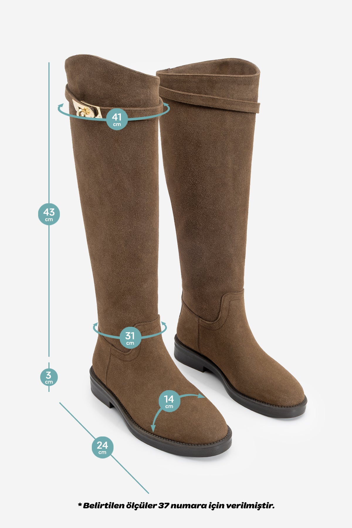 Kadın Tokalı Günlük Çizme Velote - Kahve Süet