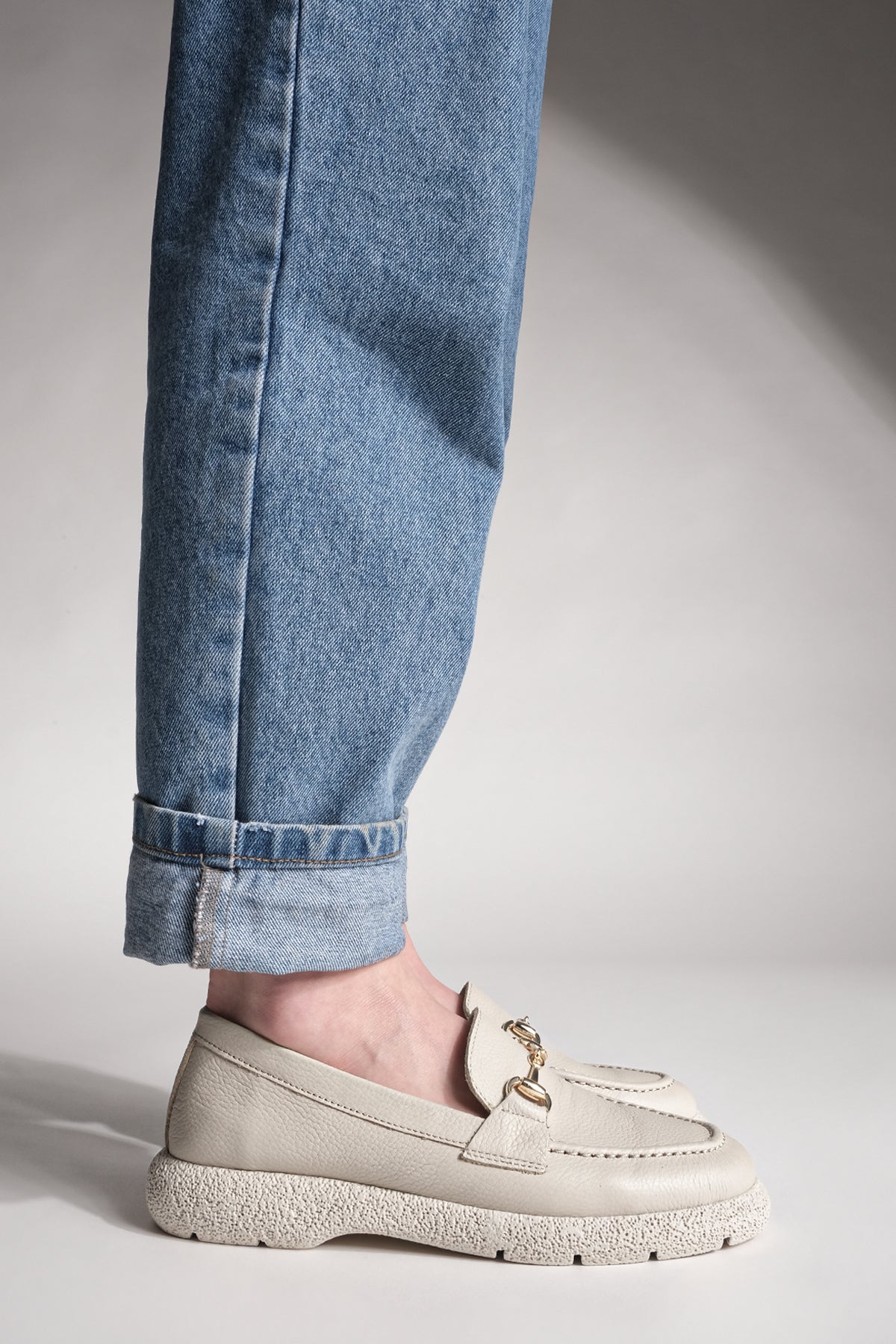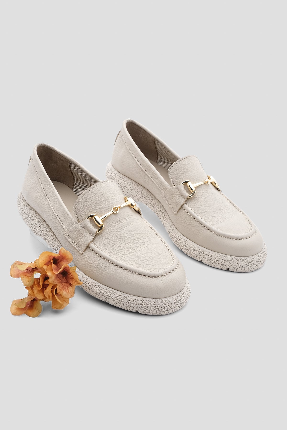 Kadın Tokalı Hakiki Deri Loafer Günlük Ayakkabı Runet - Bej