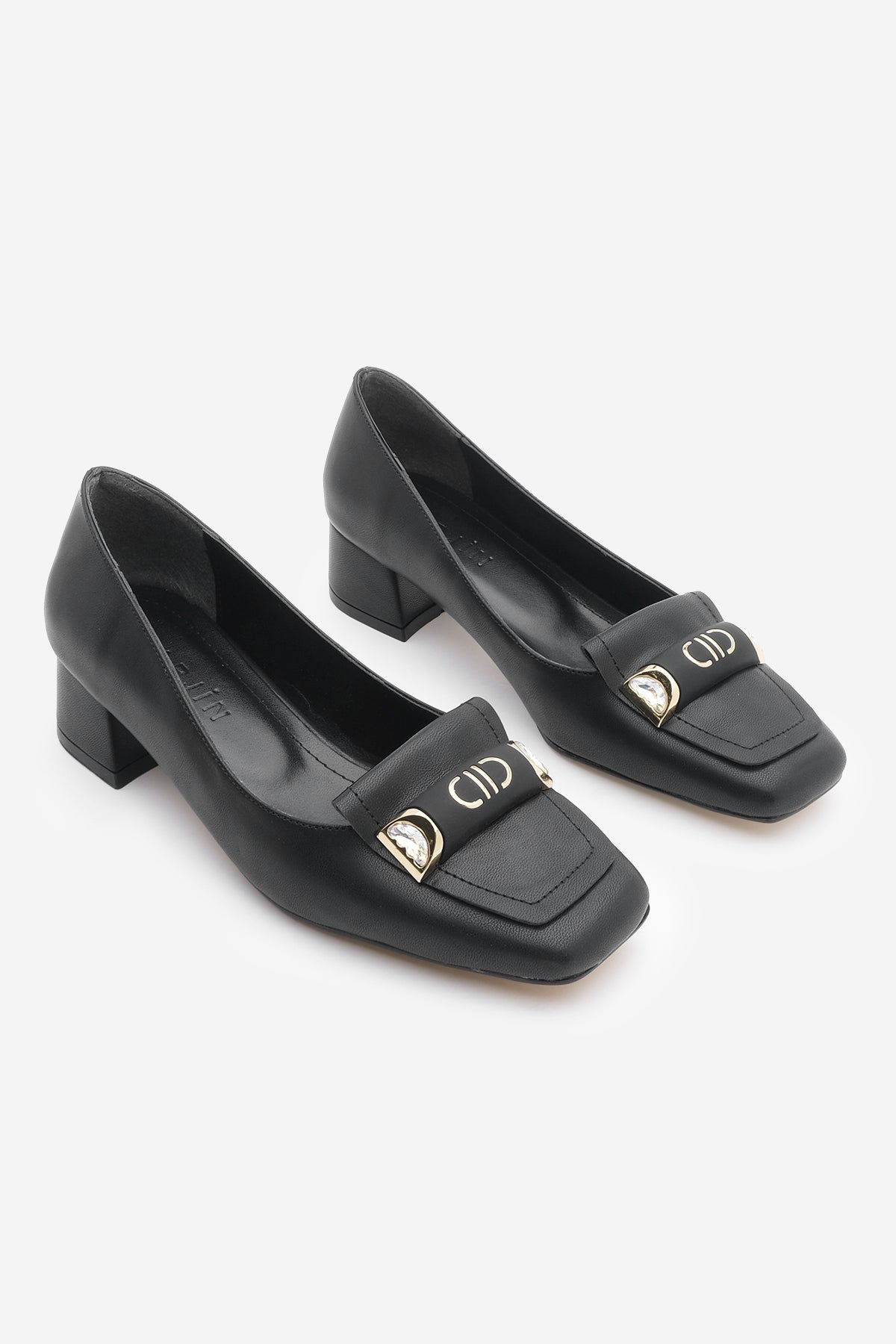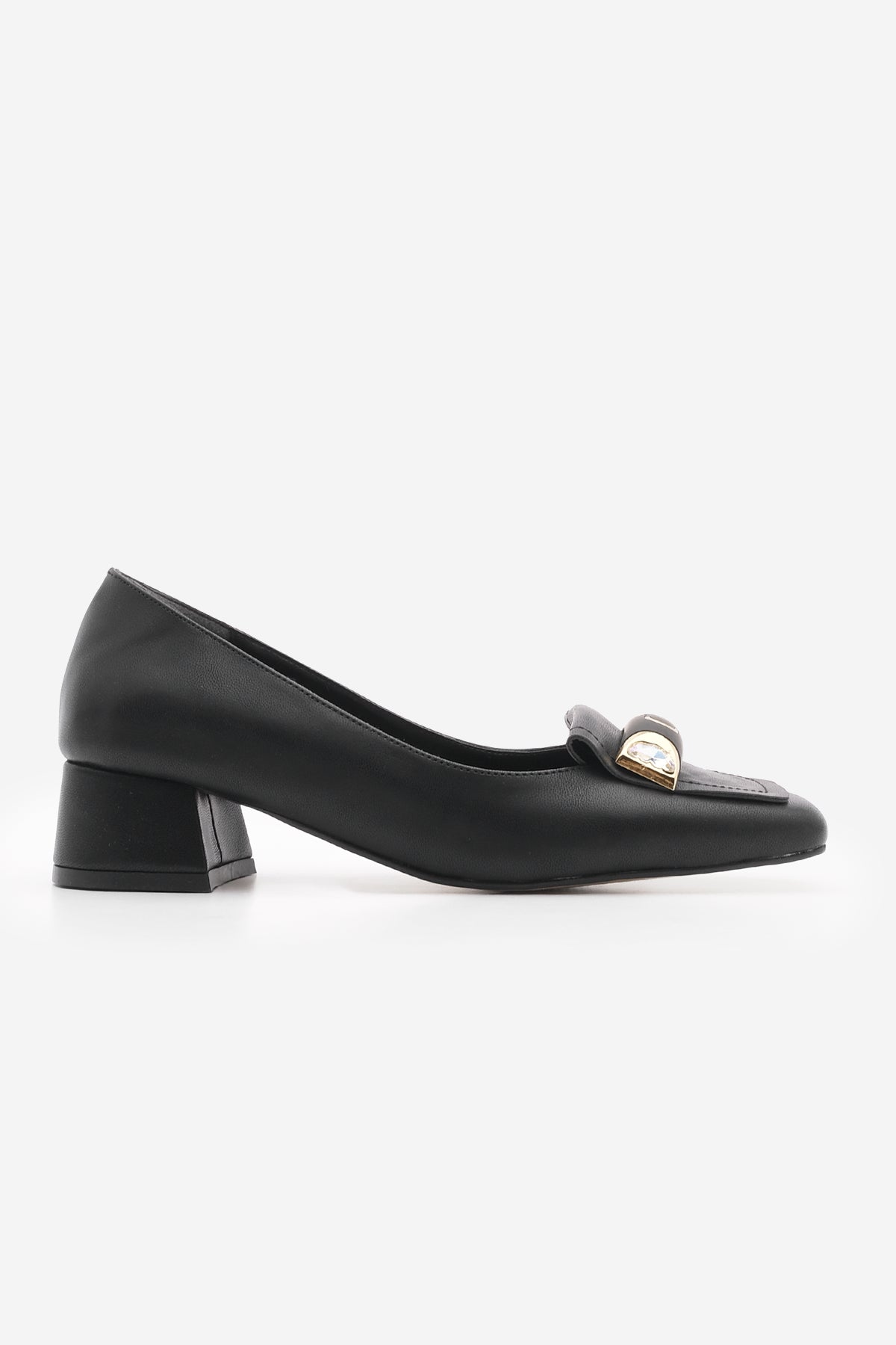 Kadın Tokalı Klasik Topuklu Ayakkabı Sartes - Siyah