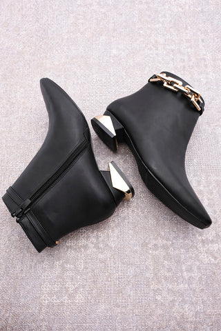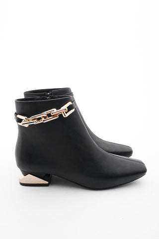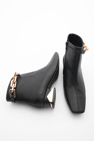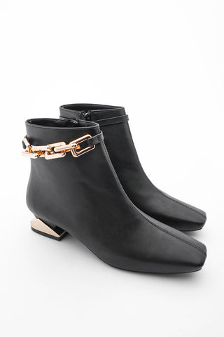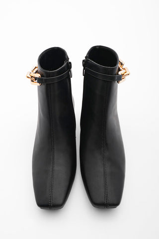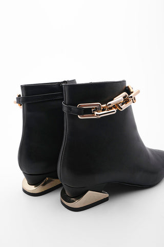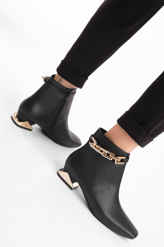 Kadın Topuklu Bot Ayna Ökçe Zincirli Fera - Siyah