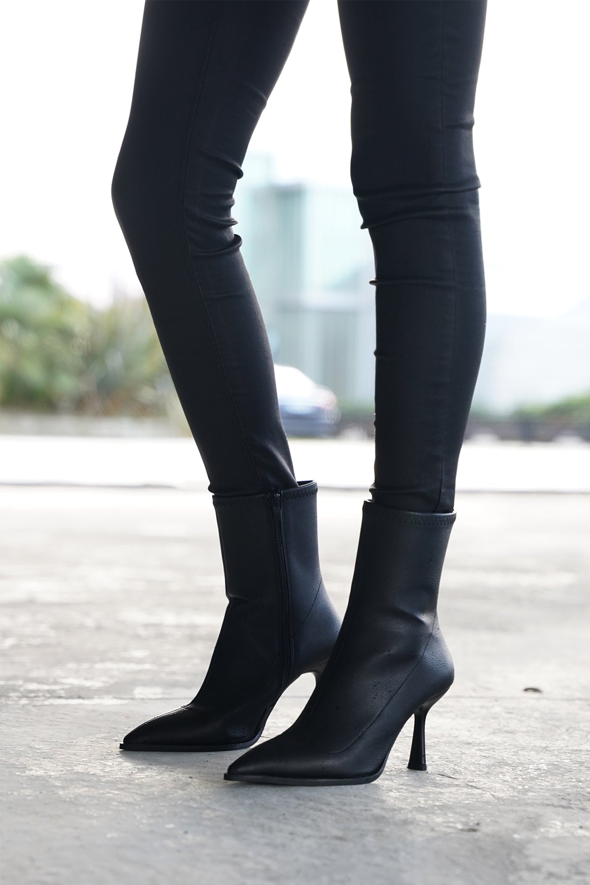 Kadın Kalın Topuklu Bot Mirasa - Siyah Croco