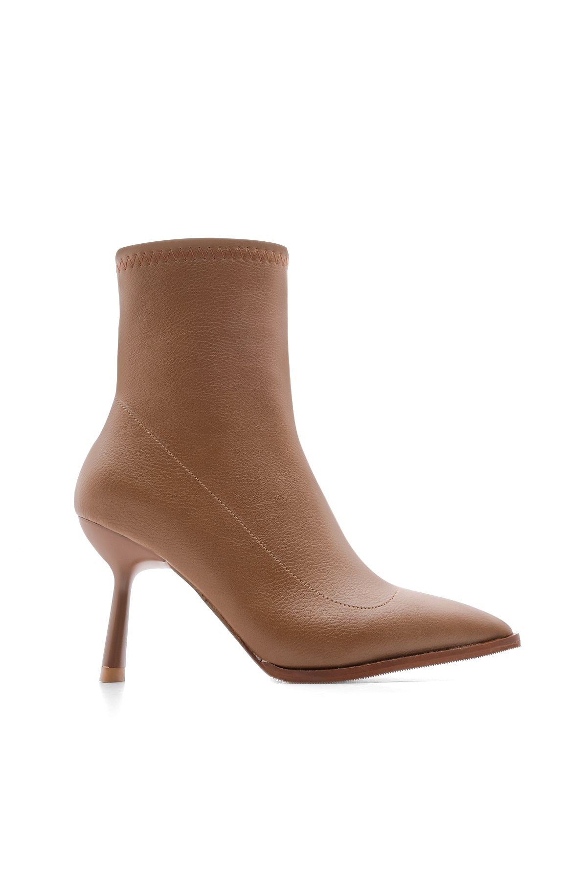 Kadın Küt Burun Topuklu Bot Sivet - Taba Süet