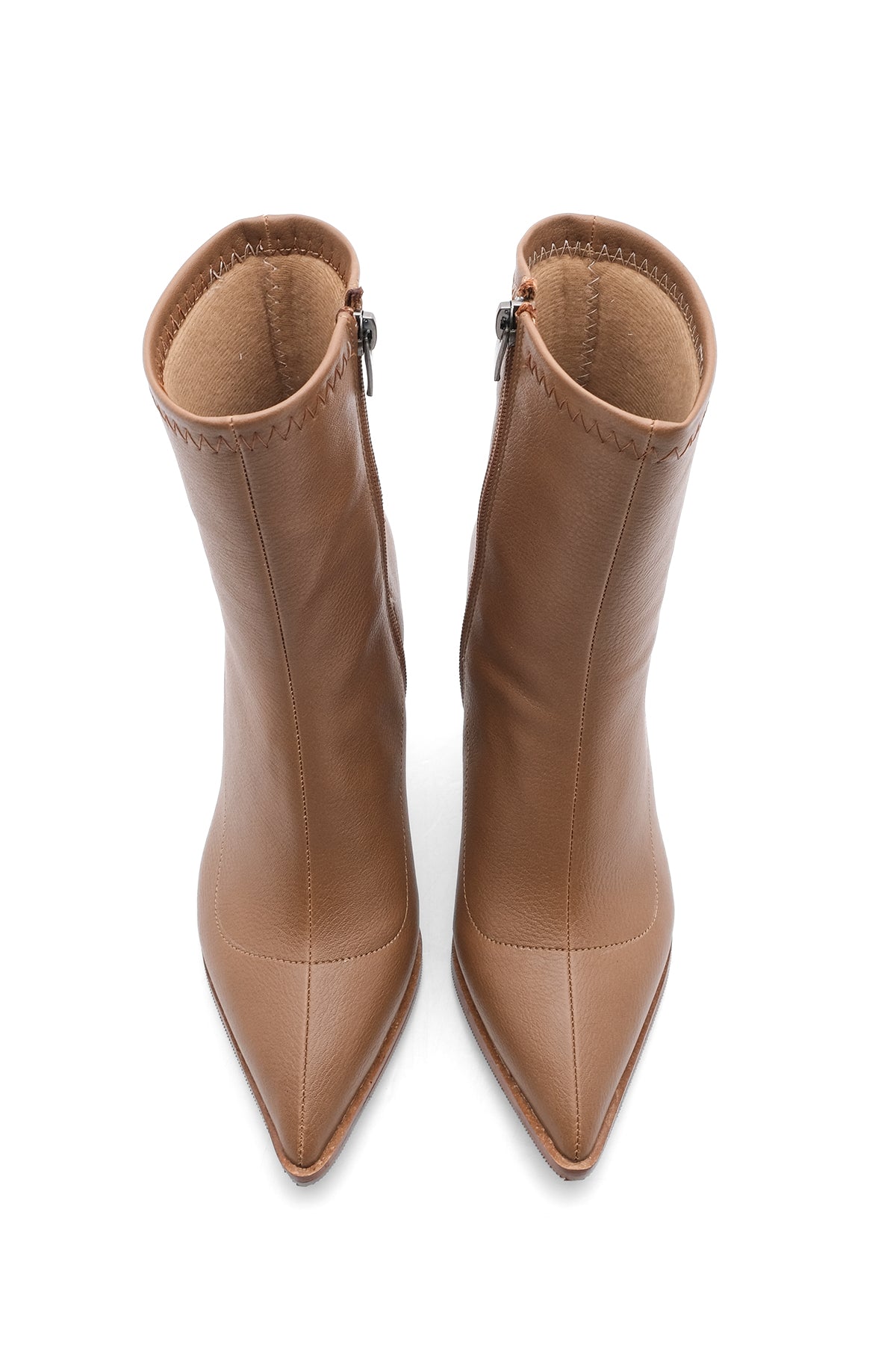 Kadın Sivri Burun Topuklu Çizme Mortez - Kahve Süet