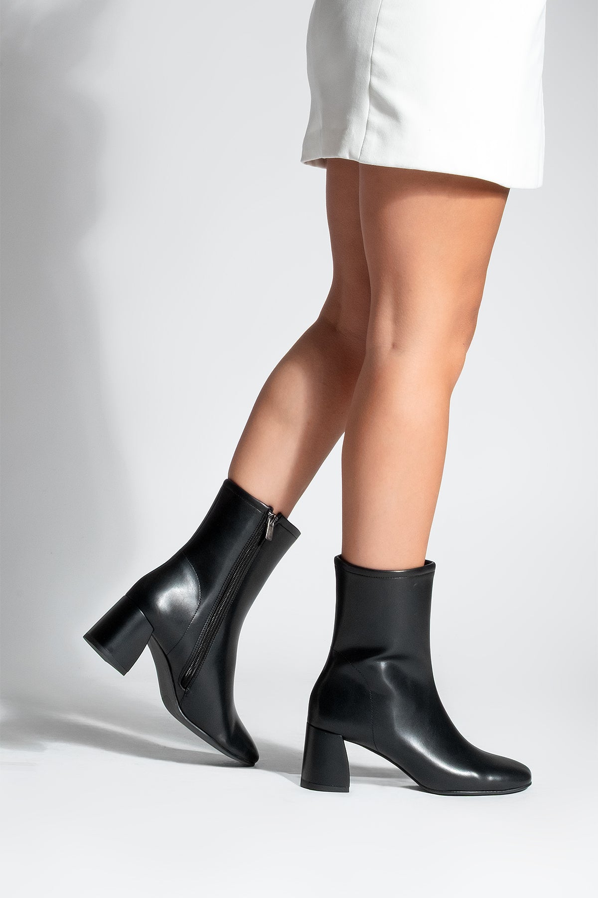 Kadın Küt Burun Topuklu Çizme Doreka - Siyah