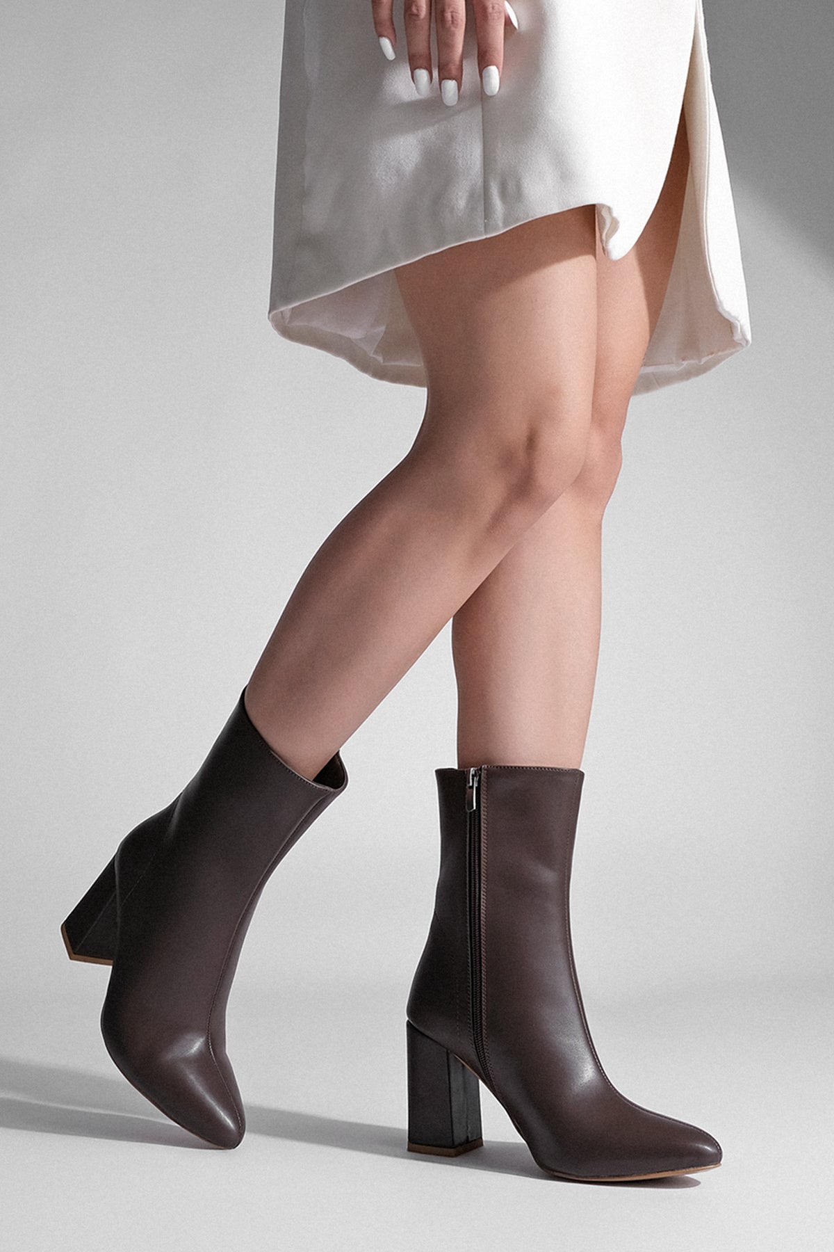Kadın Küt Burun Topuklu Bot Sivet - Taba Süet