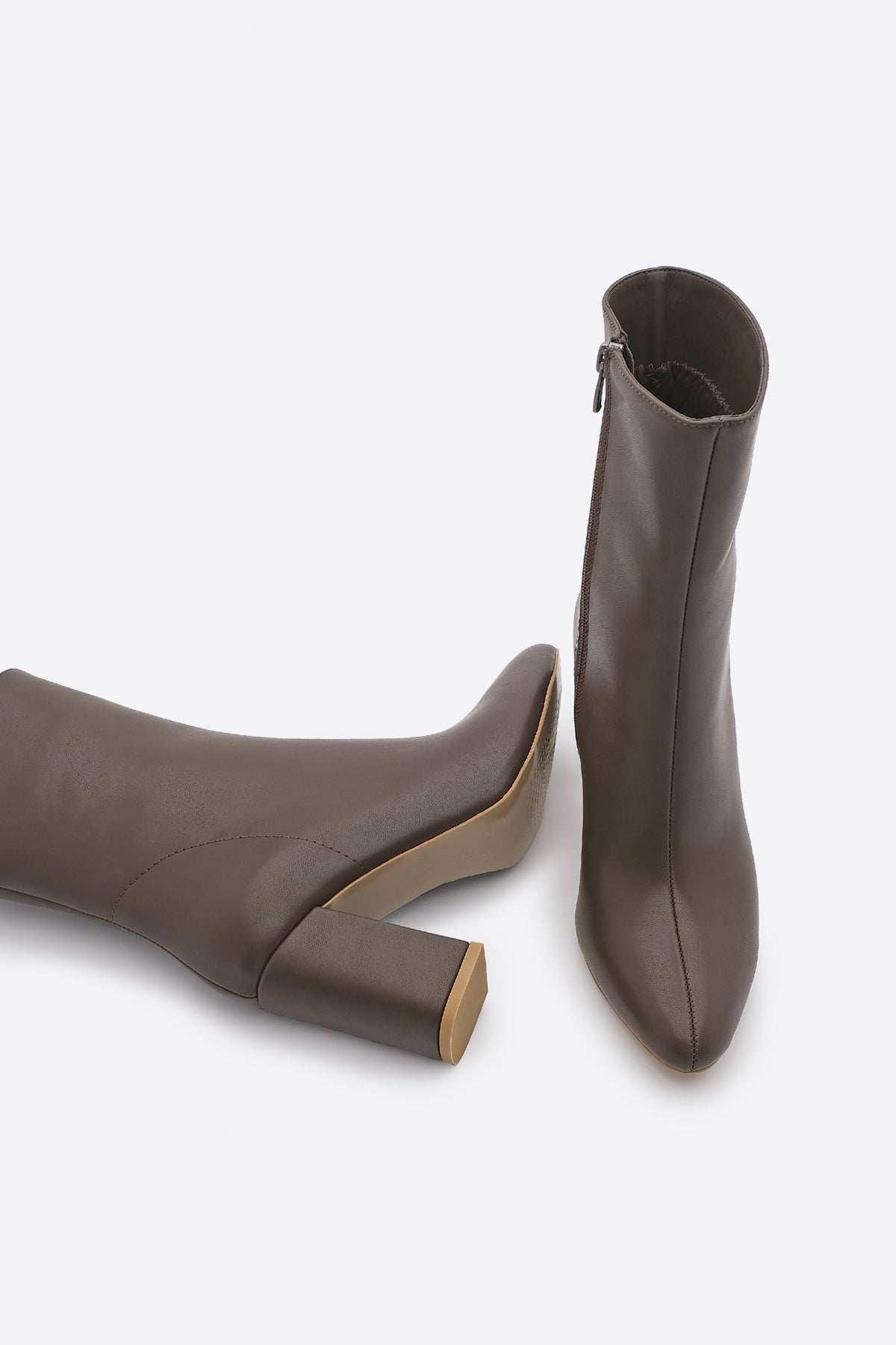 Kadın Sivri Burun Topuklu Çizme Mortez - Kahve Süet