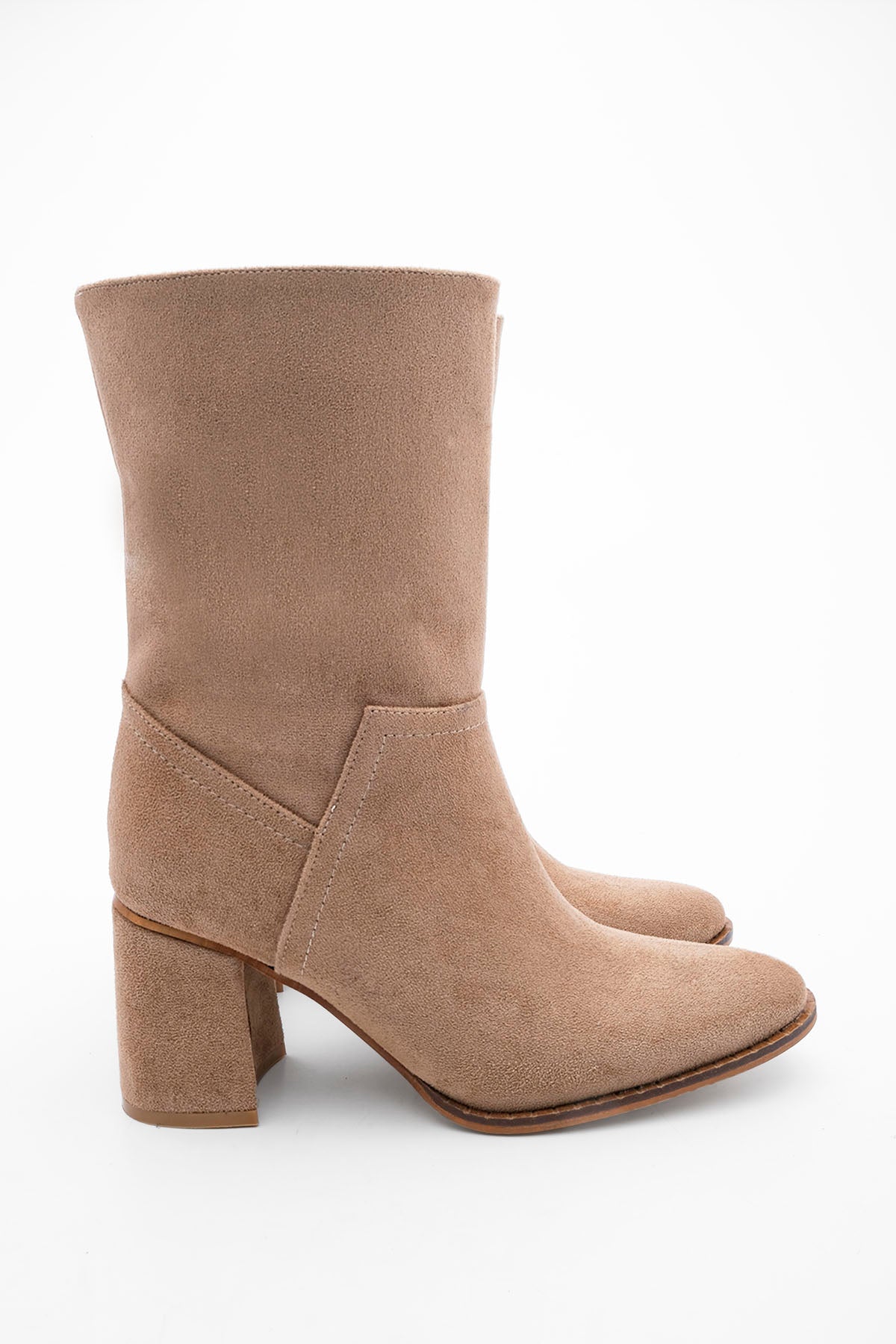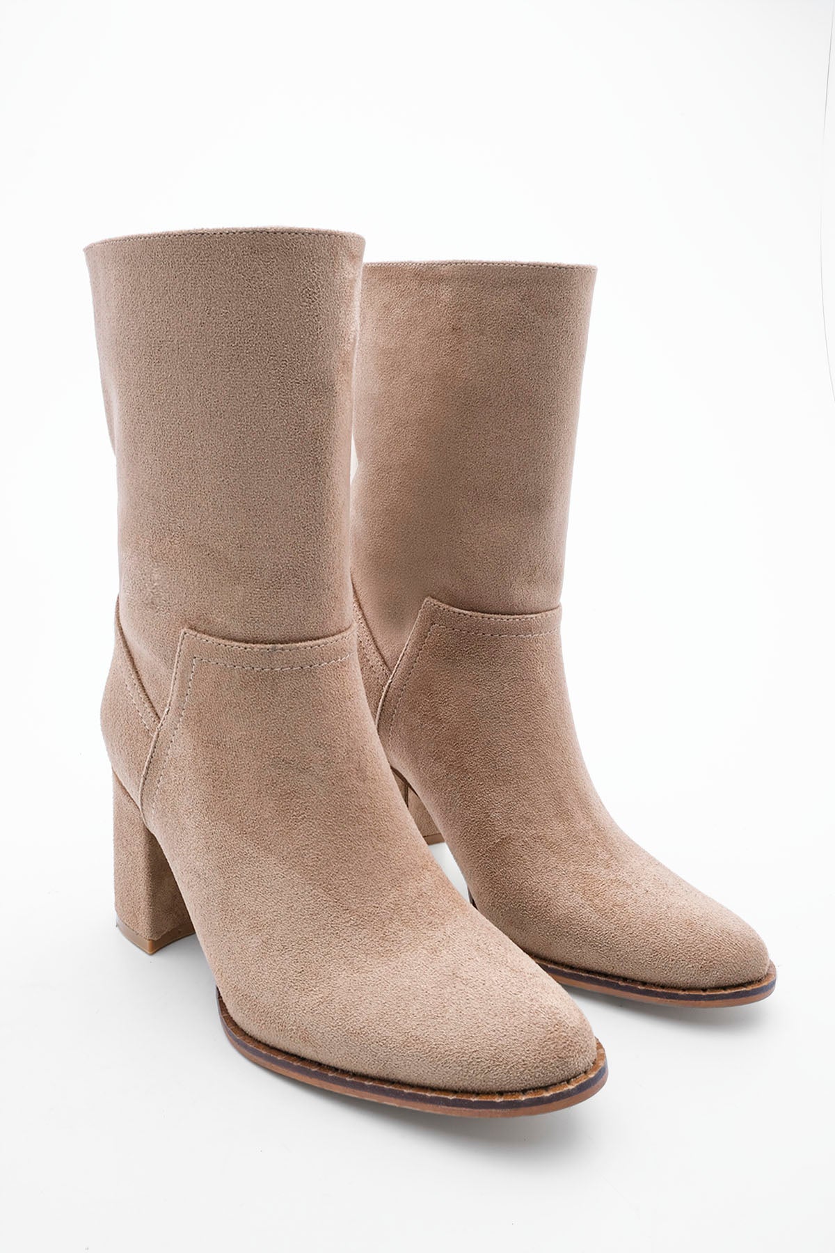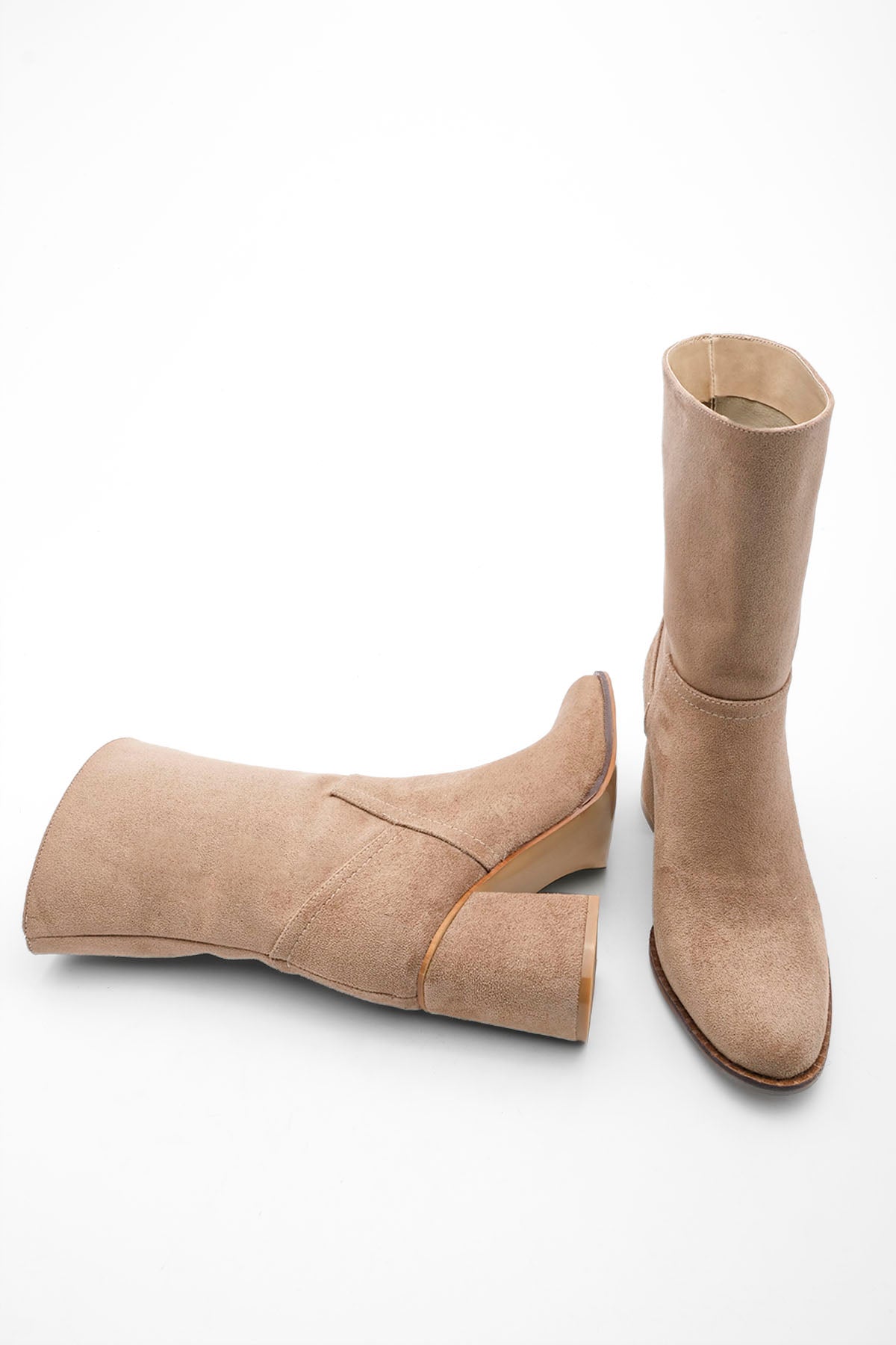 Kadın Küt Burun Topuklu Bot Sivet - Taba Süet