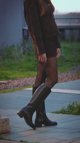 Kadın Kalın Taban Günlük Çizme Boren - Siyah