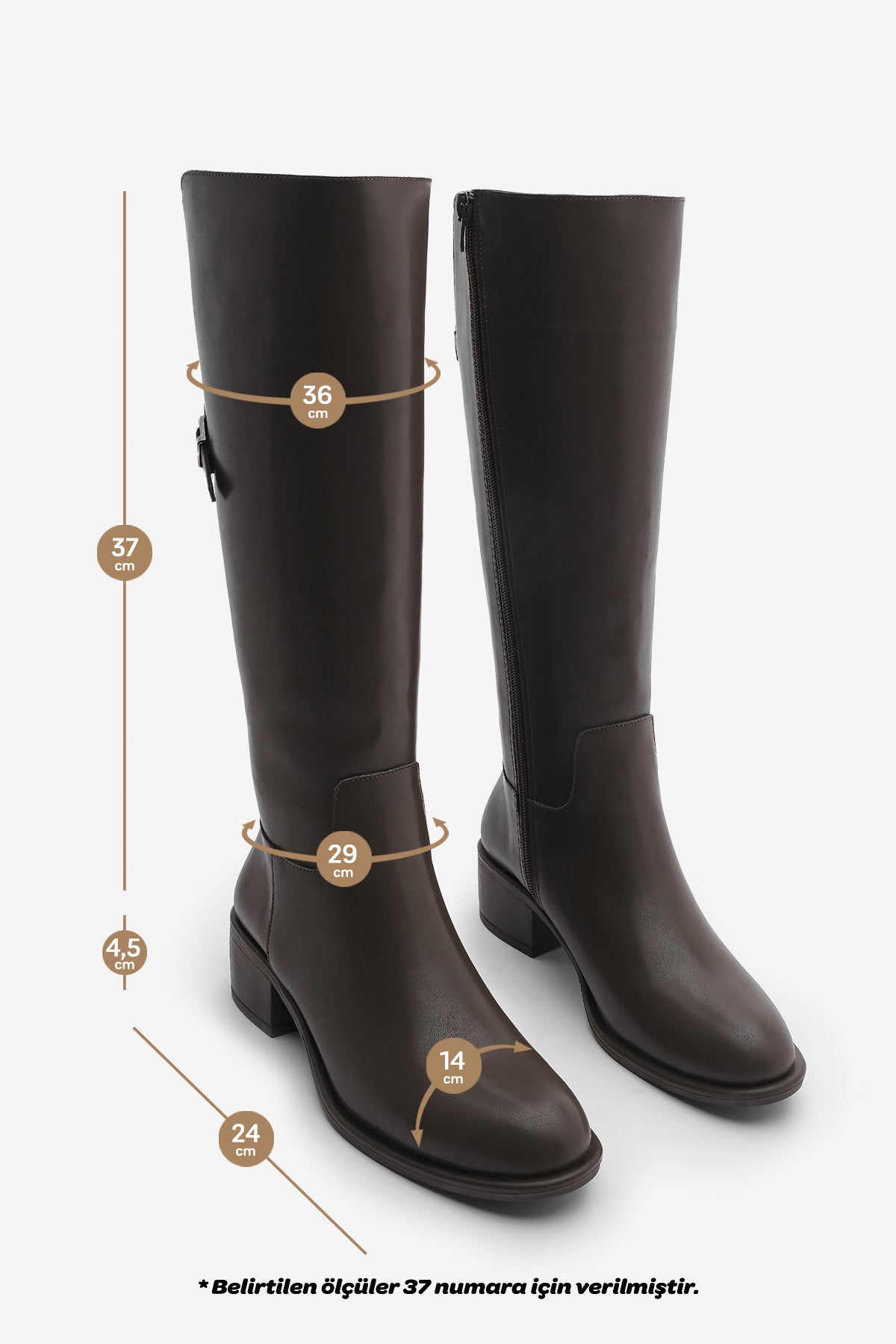 Kadın Küt Burun Topuklu Çizme Doreka - Kahve