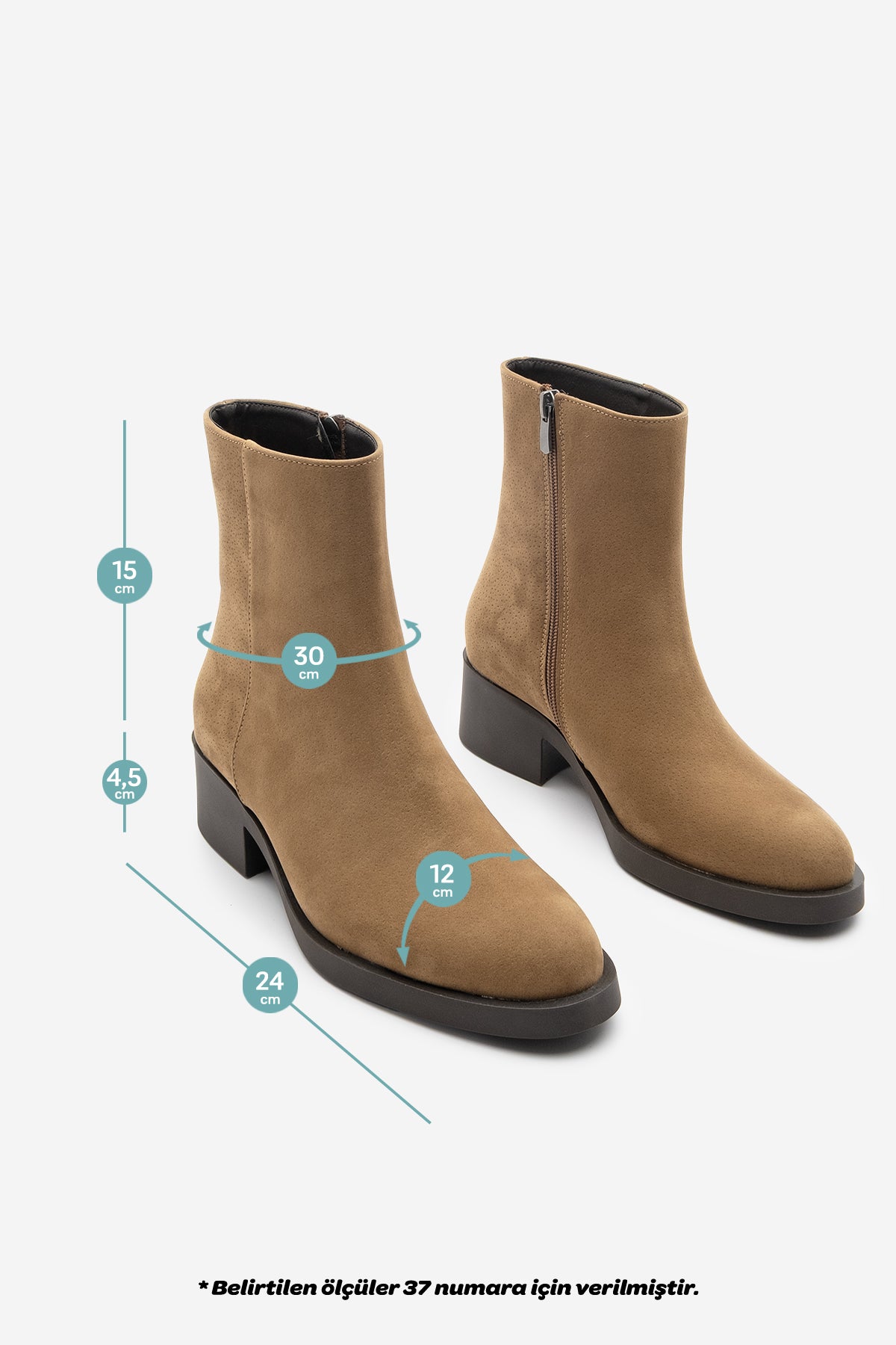 Kadın Topuklu Günlük Bot Huna - Taba Süet