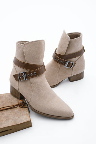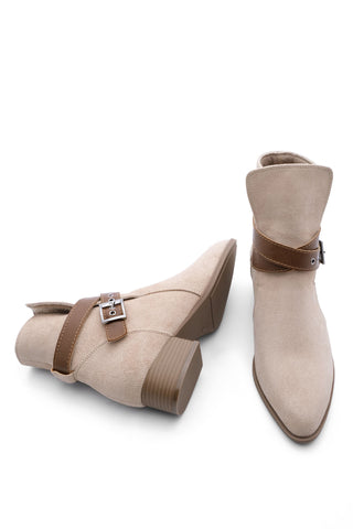 Kadın Western Topuklu Bot Delven - Bej Süet