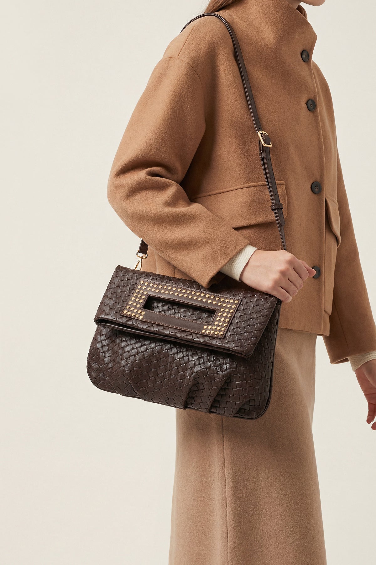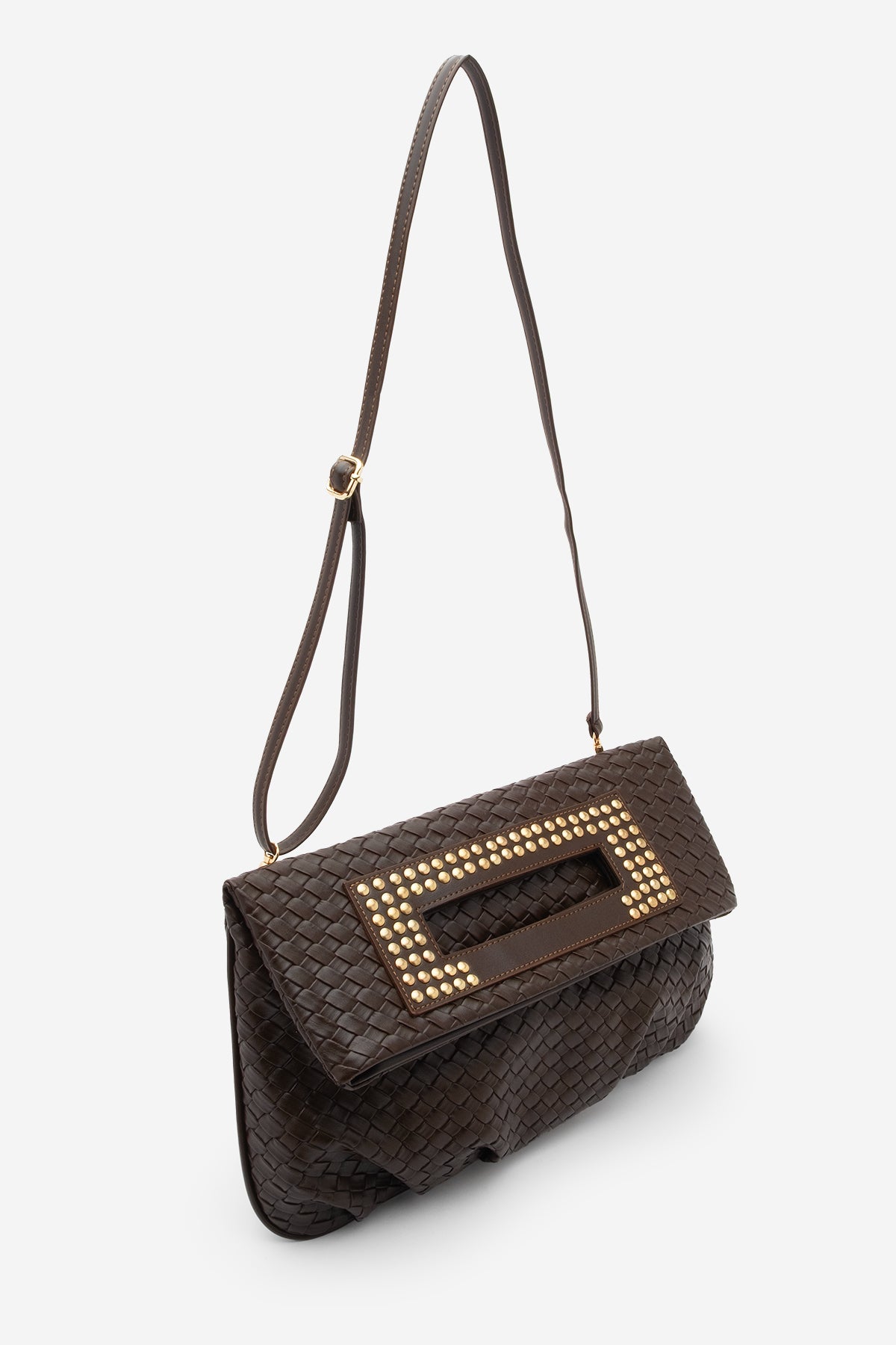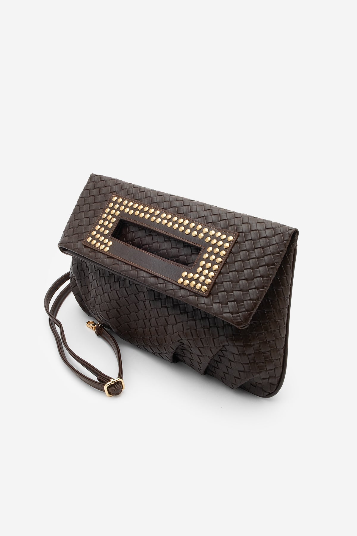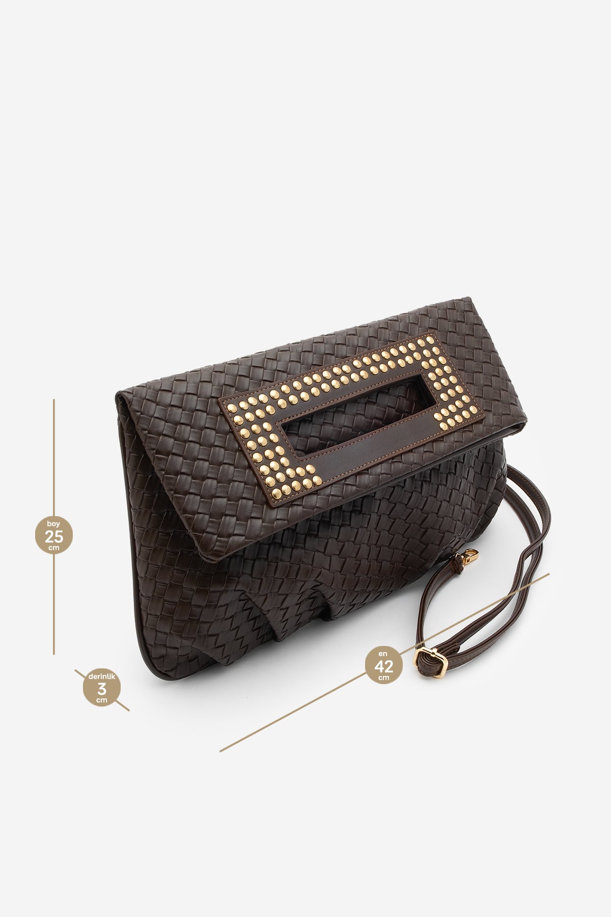Kadın Zımbalı El Ve Omuz Çantası Panes - Kahve
