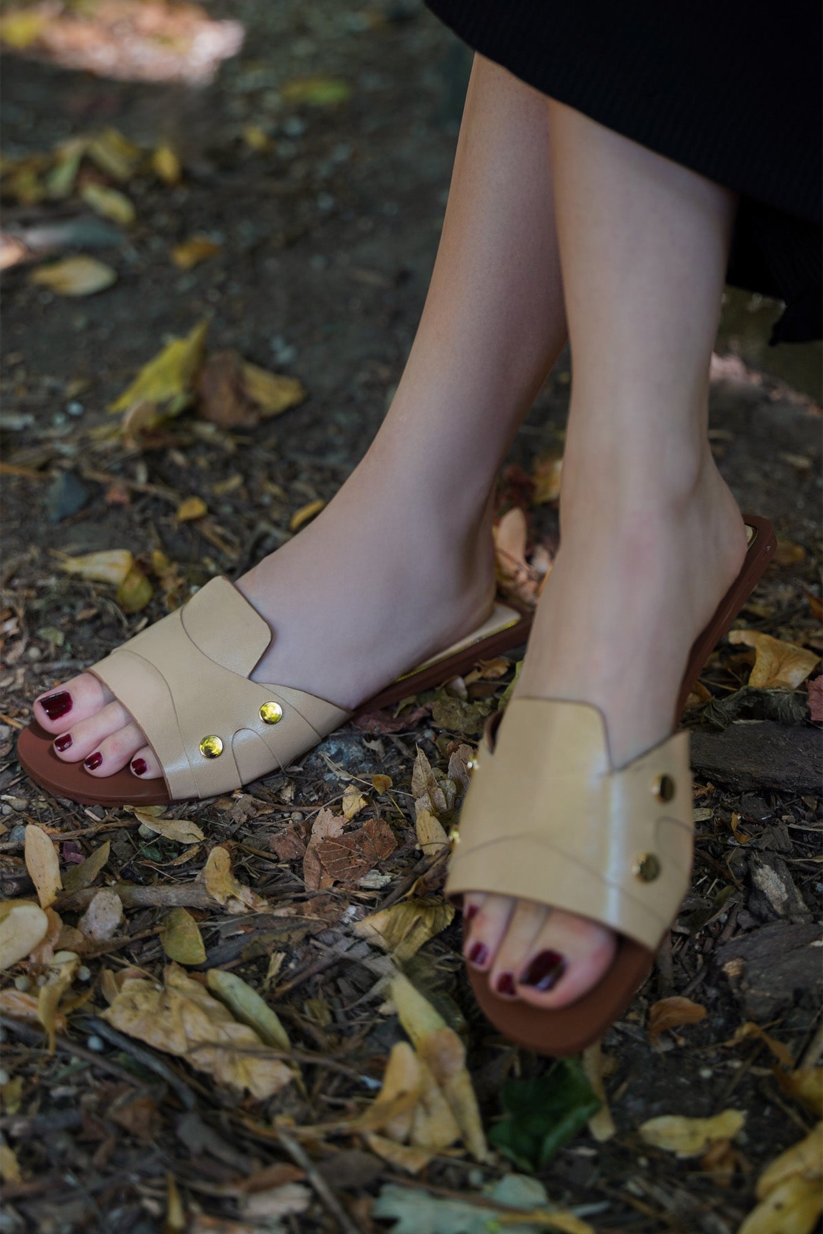Kadın Zımbalı Günlük Terlik Vimase - Bej