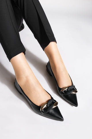 Kadın Zincir Tokalı Babet Elvaz - Siyah