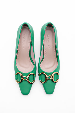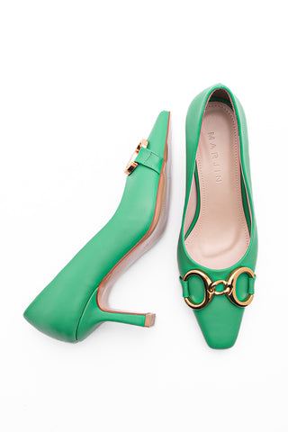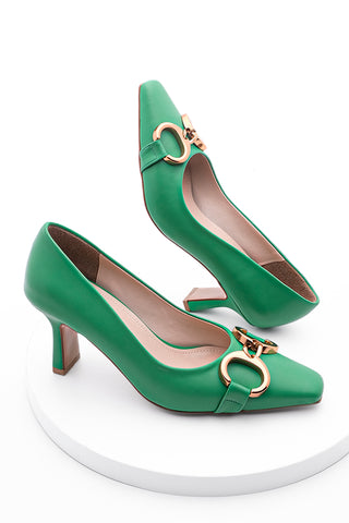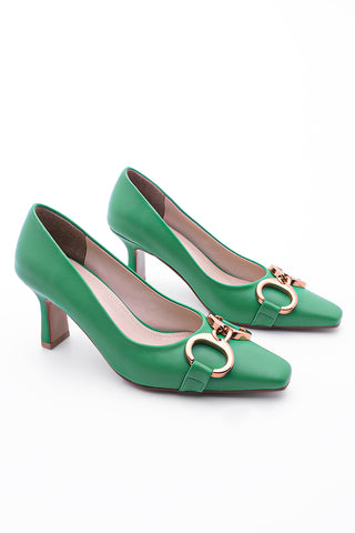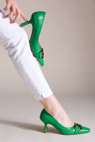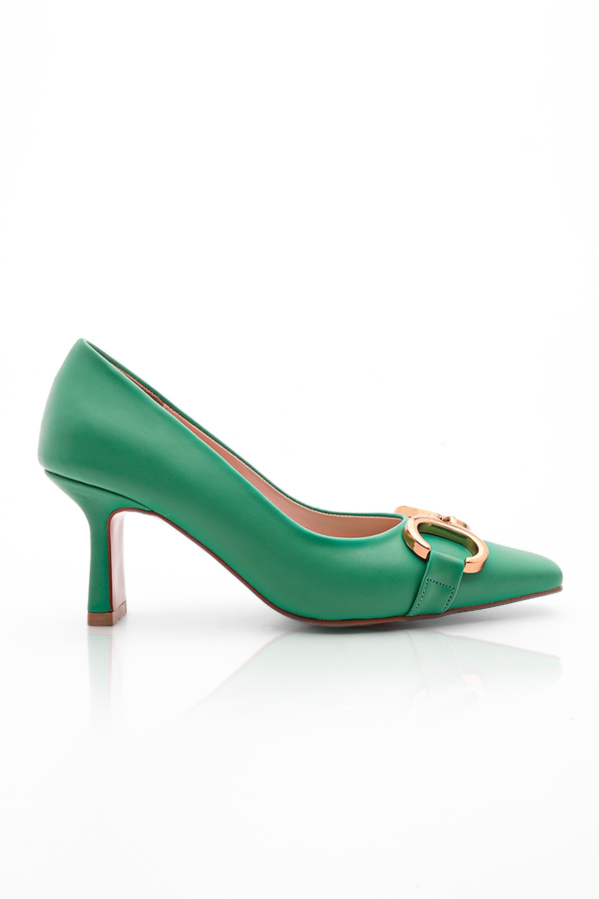 Kadın Zincir Tokalı Stiletto Topuklu Ayakkabı Dakula - Yeşil
