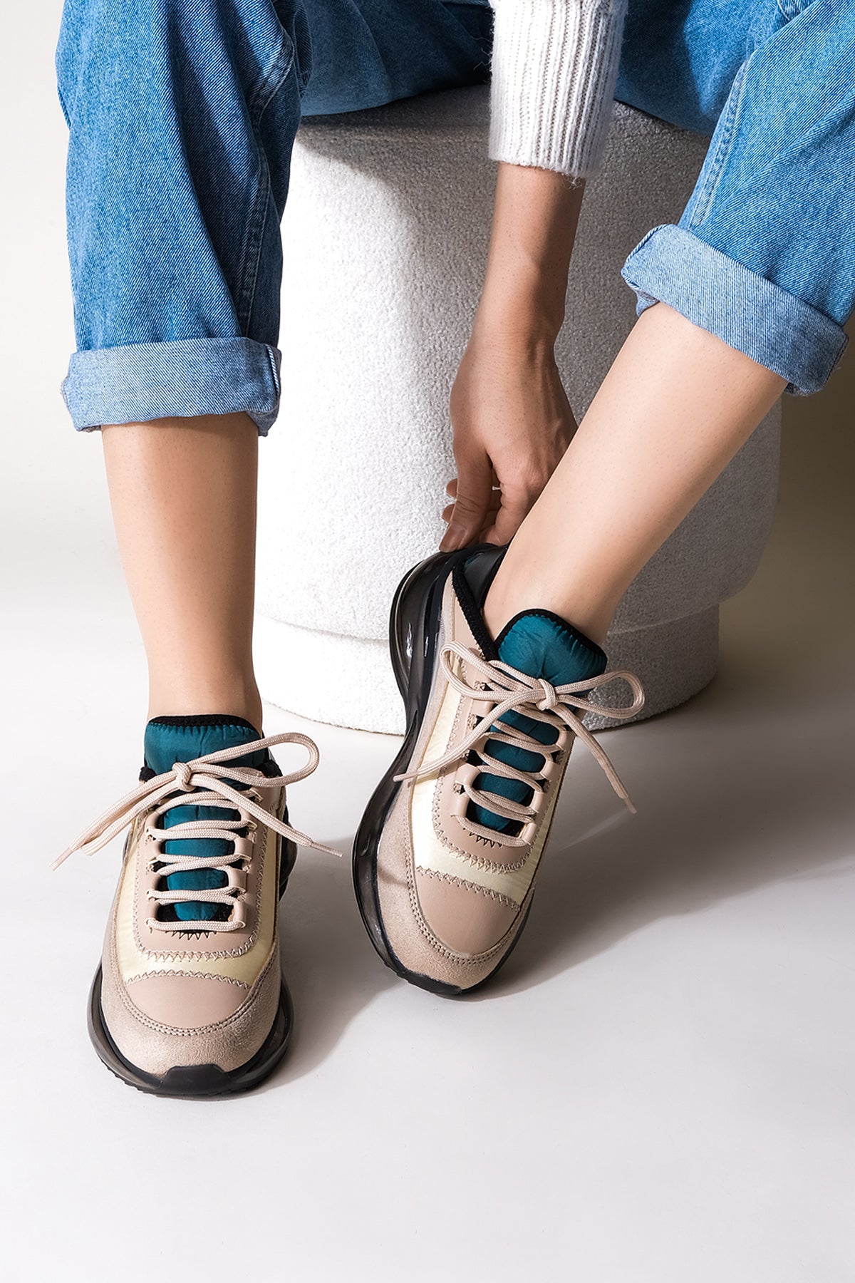 Unisex Sneaker Şeffaf Taban Spor Ayakkabı Gunes - Bej